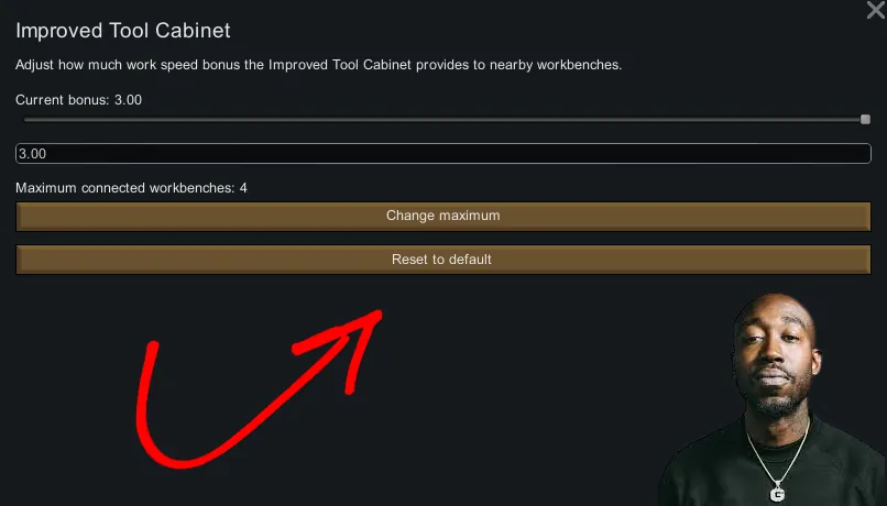 - A simpler and faster version of the vanilla tool cabinet. - Only linkable with core workbenches. - Fully configurable in-game: set up to 4 linked cabinets and boost crafting speed by up to +300%.