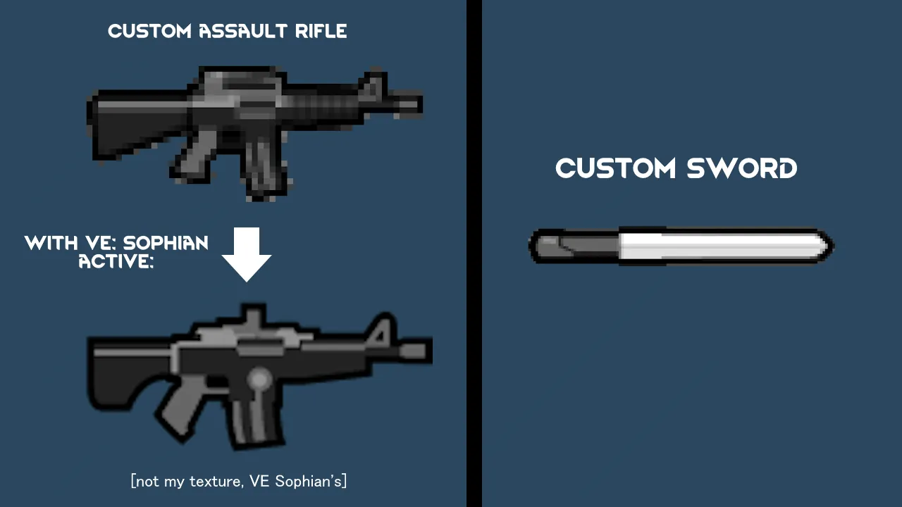 [b]Troopers[/b] and [b]Janissaries[/b] use a [b]custom assault rifle[/b], slightly less powerful than the base game assault rifle. With [url=http://steamcommunity.com/sharedfiles/filedetails/?id=3194606539]Vanilla Ideology Expanded - Sophian Style[/url], it takes on that mod's sophian assault rifle texture.