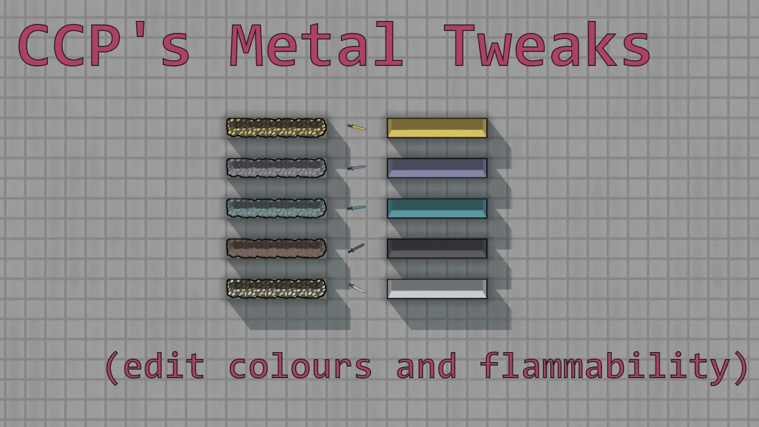Recolours vanilla metals to your preferences. Use the settings in XML Extensions to change the colour!