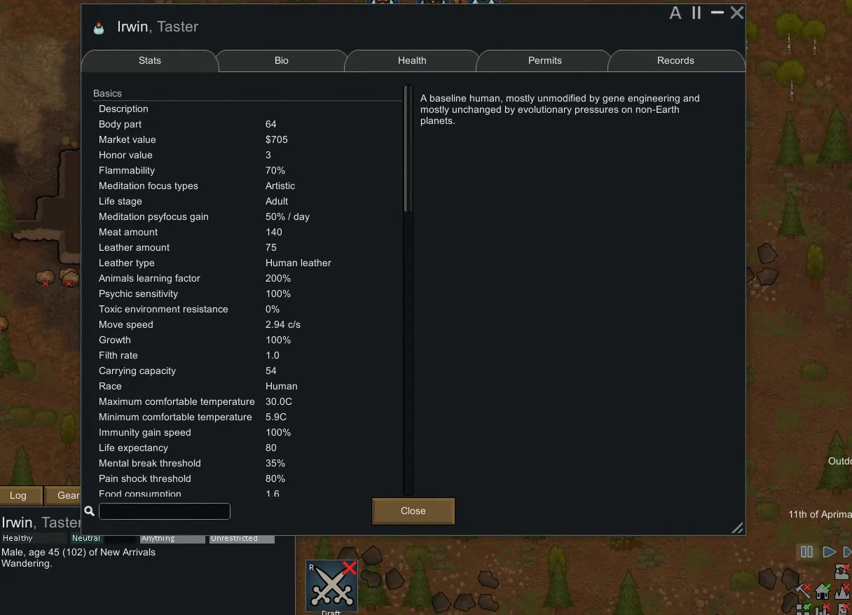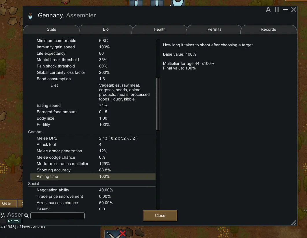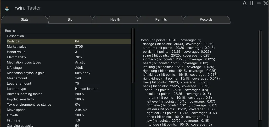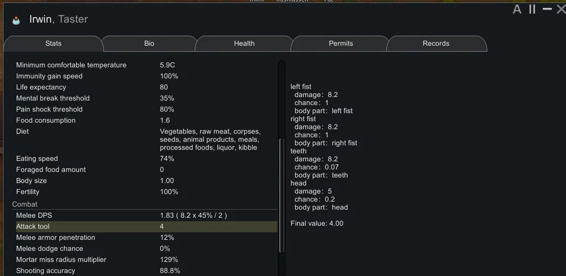 [*] More pawn stats(body parts and attack tool)