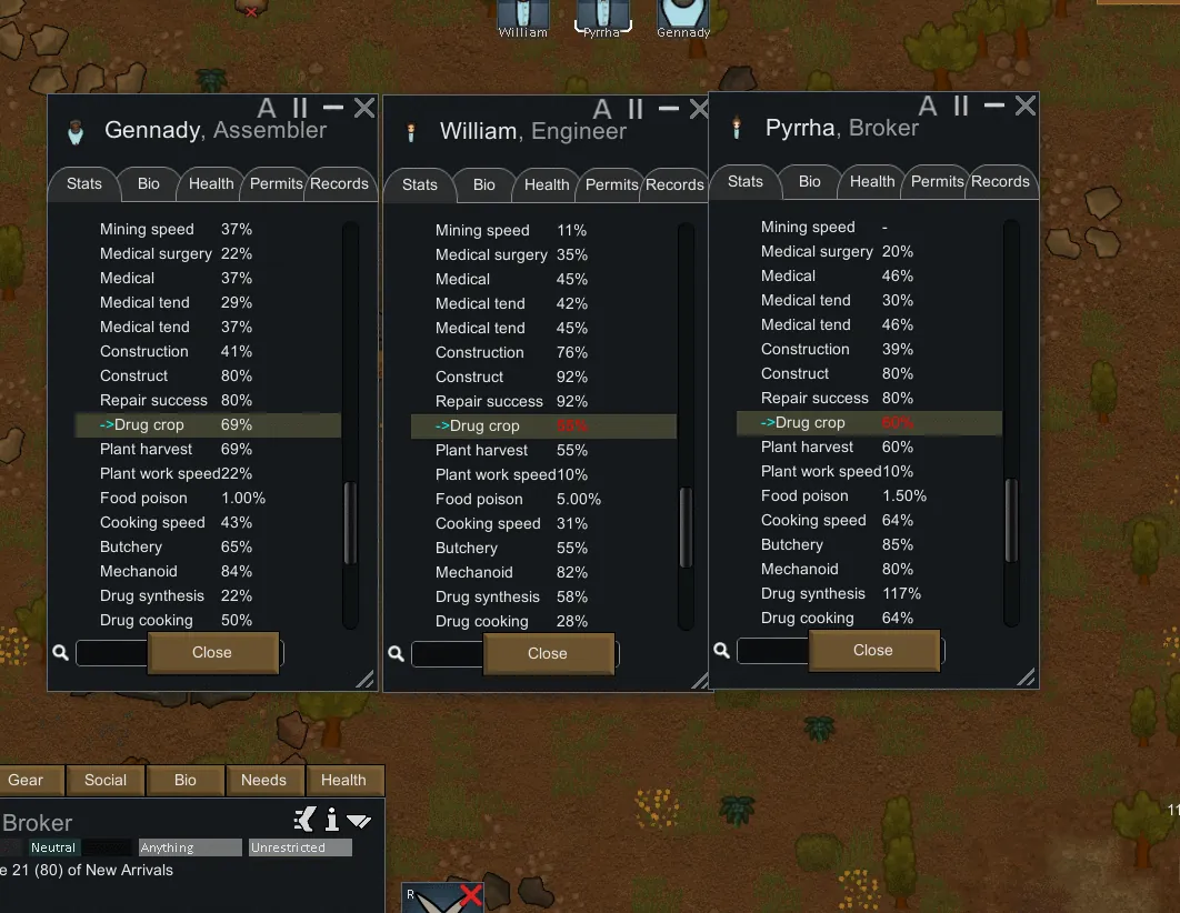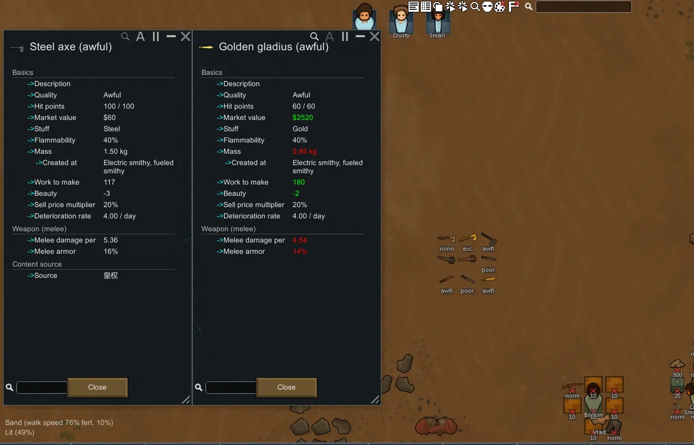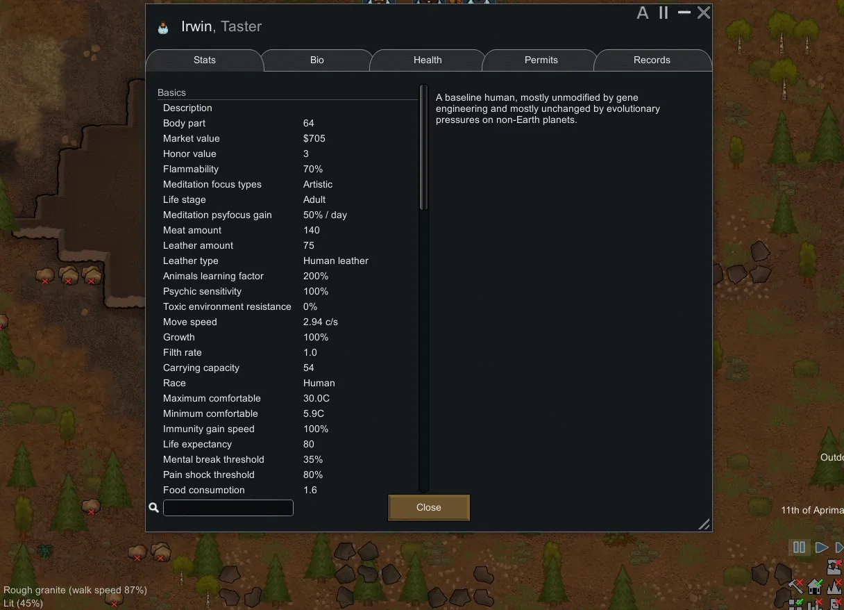 [*] More pawn stats(body parts and attack tool)