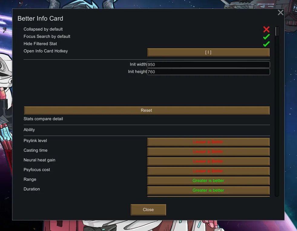 [*] Some stat values are not "Greater Is Better"(i.e Aiming Time), but it's impossible to preset them due to code structure. You may need to set it manually.