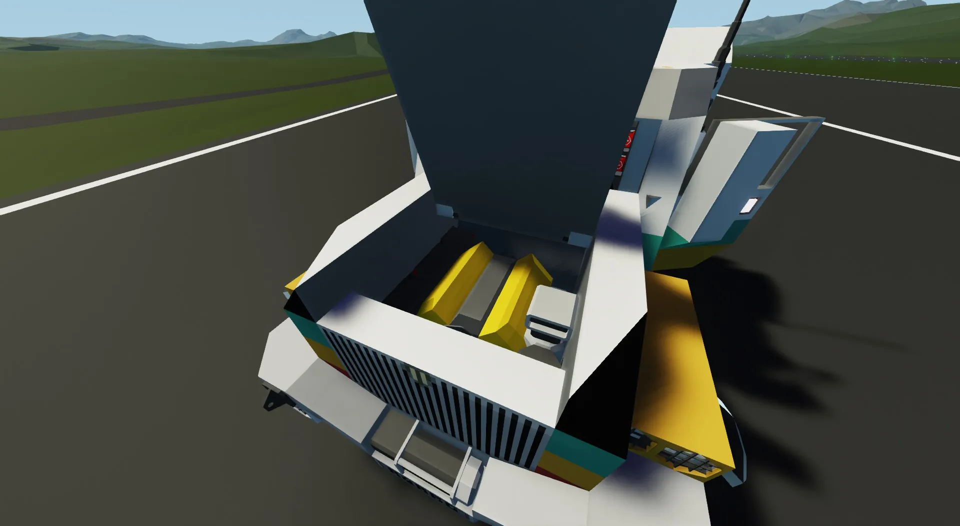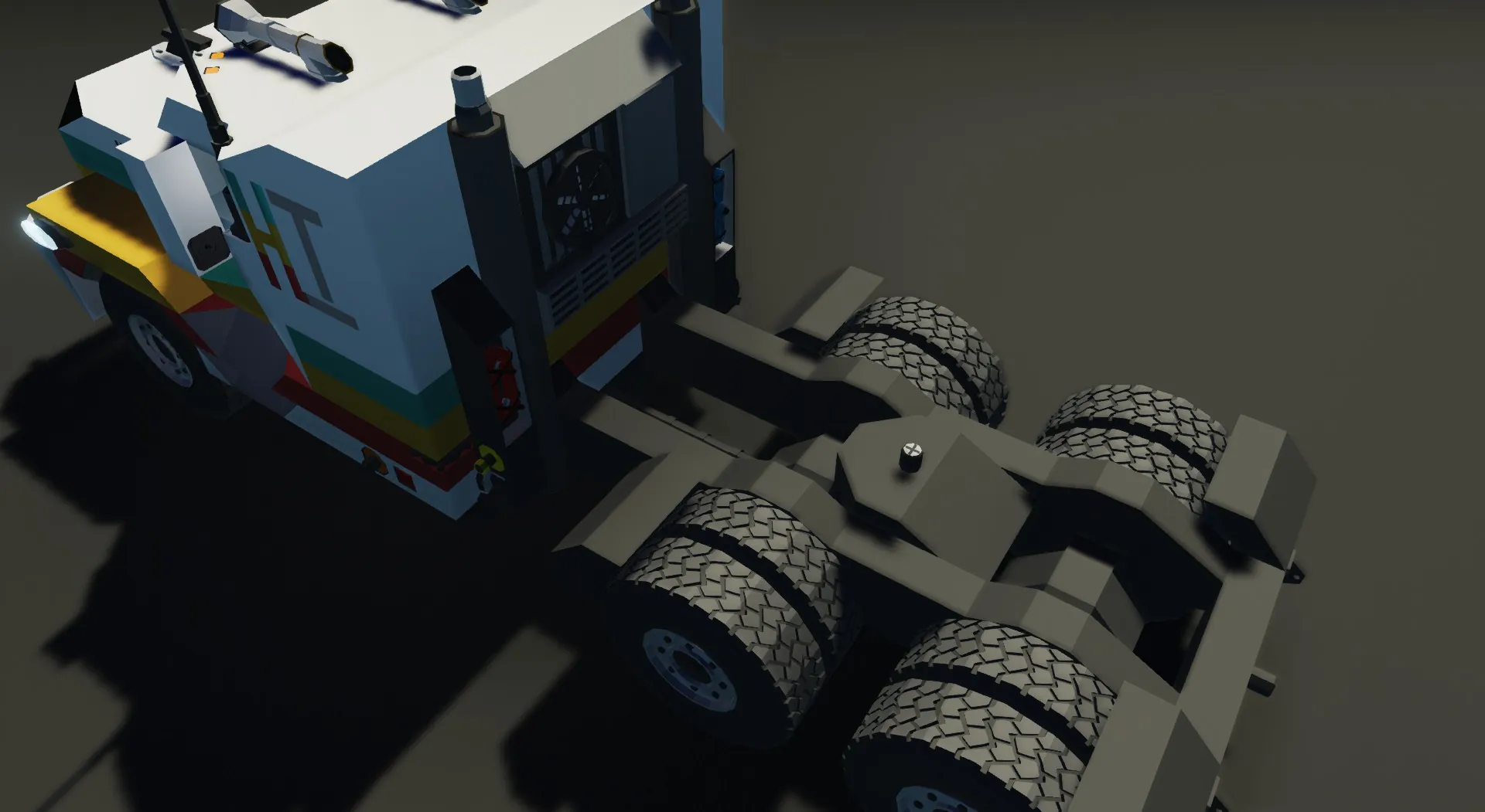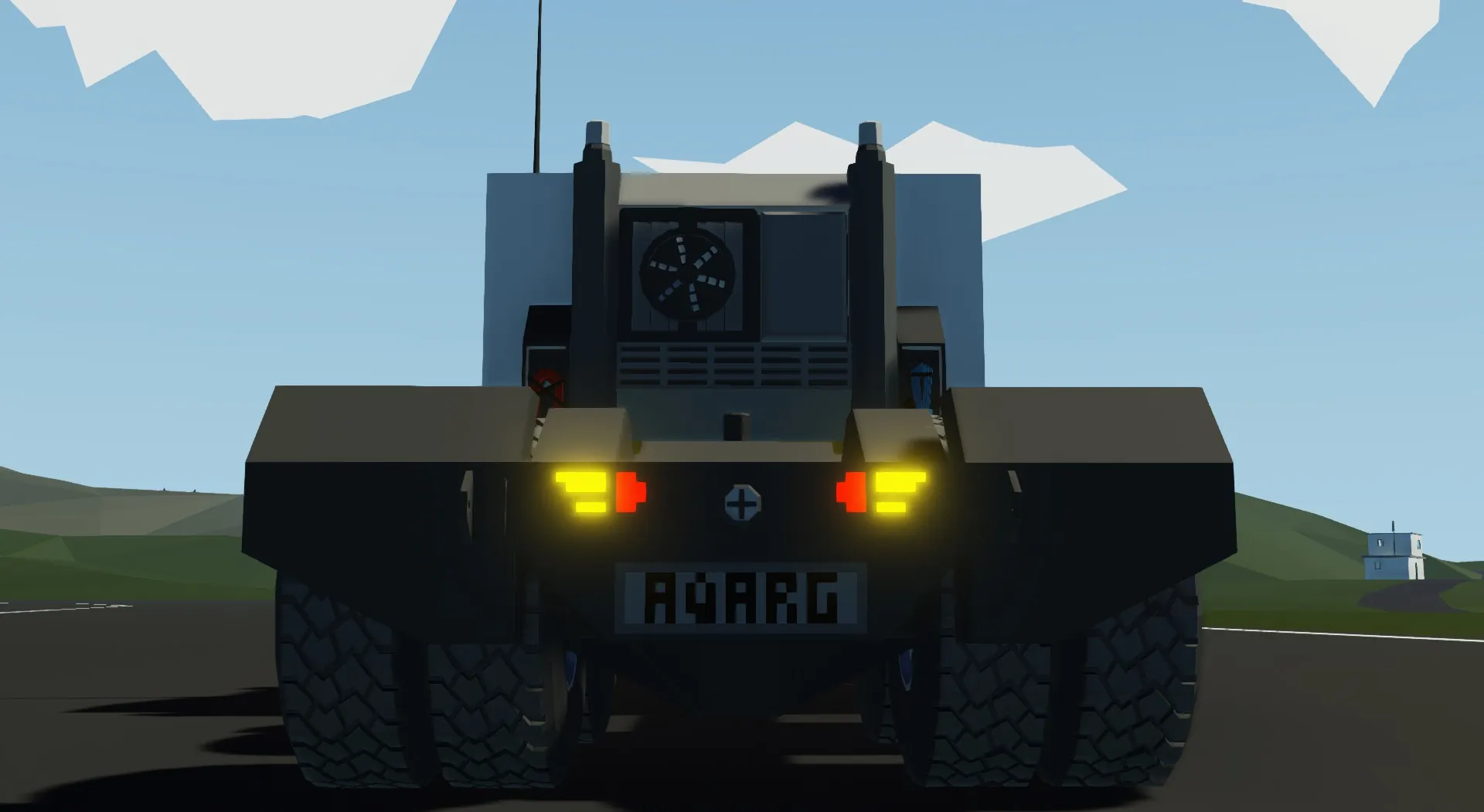 A jet-powered semi truck! It is somewhat weak because i cant quite get more power out of it but its good enough to tow preset trailers. Night cab is obviously completely unusable as its the only place where i could even hide a jet engine. Has a fake engine in the front - just for the looks :)