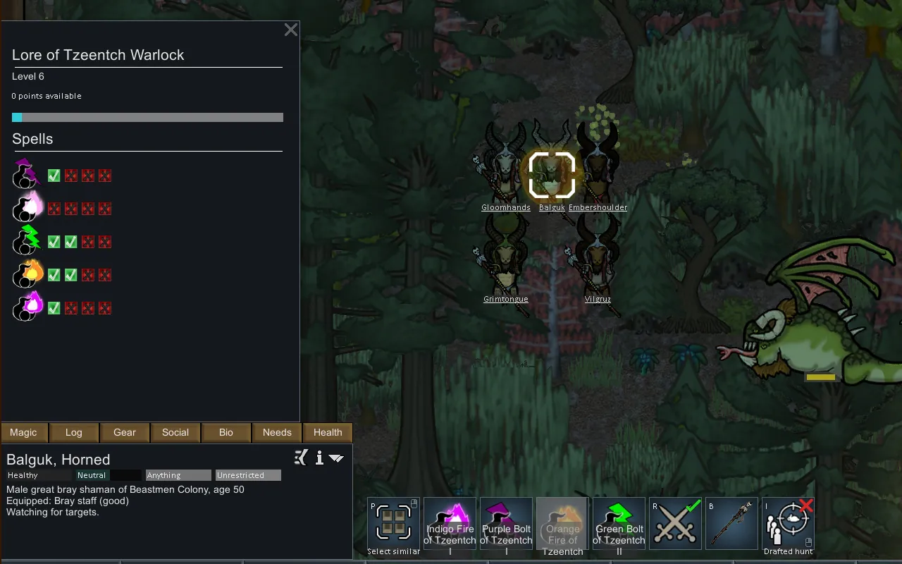 Adds 18 unique lores of magic, themed to Warhammer magic, with 5 improvable spells per lore. There are also add on non lore spells that magic user pawns can learn by reading magic scrolls added by this mod. The Rimhammer factions that use magic can craft the scrolls, and other magic items, at the magic user's workbench.