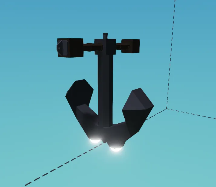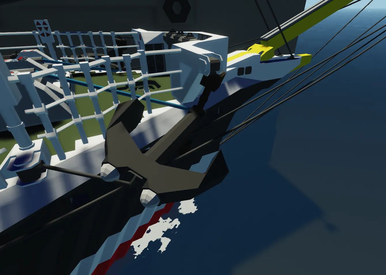 The Anchor has 3 additional rope Anchors, that can be used for securing the Anchor to the Ship or to move it via a Crane. The Anchor is capable to hold a ship in position even in a full powered Storm but can be ripped out of the Seafloor, when Sails or the Engine are used. ( a Pirates of the Caribbean Handbrake turn isn’t possible). warping heavier ships isn´t possible either.