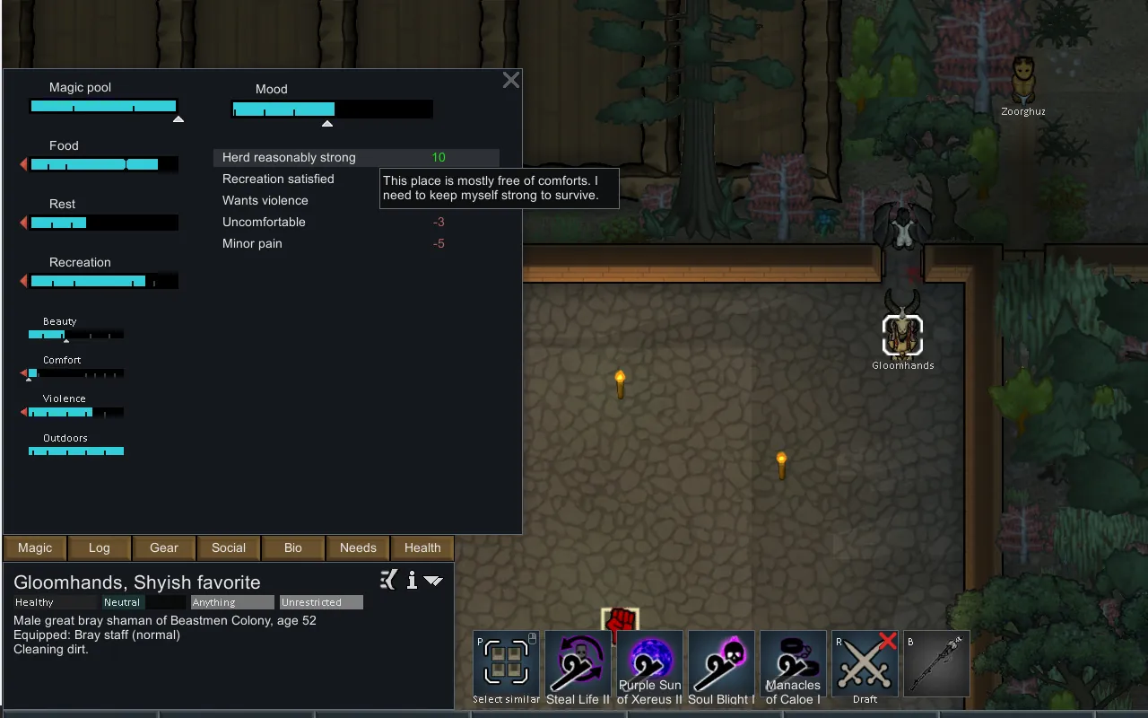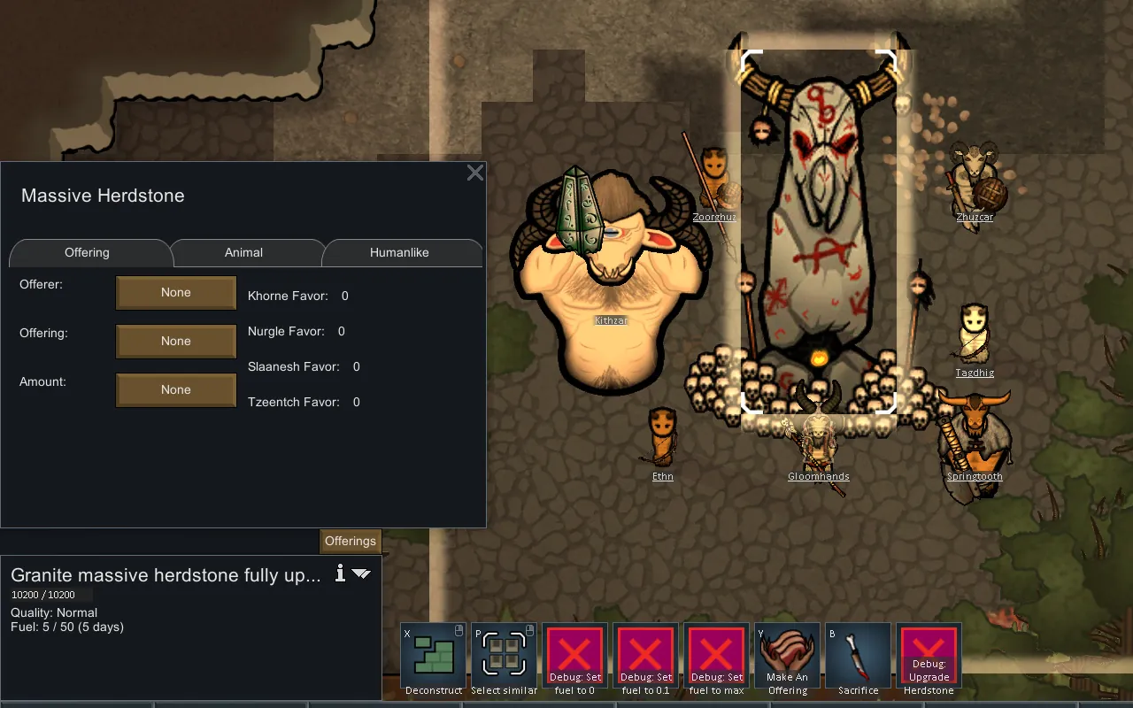 -New races: gor, ungor, cygor, bray shamans, and bullgor, chaos creatures/monsters: warhounds, tuskgor, razorgor, jabberslythes, and spawn, olde growth forest biome, research, magic (Lores of: The Wild, Beasts, Death, Shadow, and Tzeentch), massive herdstone with sacrifices and offerings, pit fights between your pawns, game alterations for beastmen to make them sustainable on meat alone, a unique nutrient paste dispenser like cauldron for cheap easy feeding, making meat into jerky, bonfires, crude furniture, crude workbenches, statues (herdstones), tent walls and doors, backstories, weapons, apparel, magic weapons and items, shields, recreation (axe throwing and drums), Unique events: Nearby Homestead and Nearby Caravan, and more!