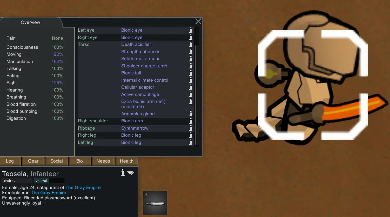 (For maximum implants and bionics on empire pawns use the first three, but all add something)