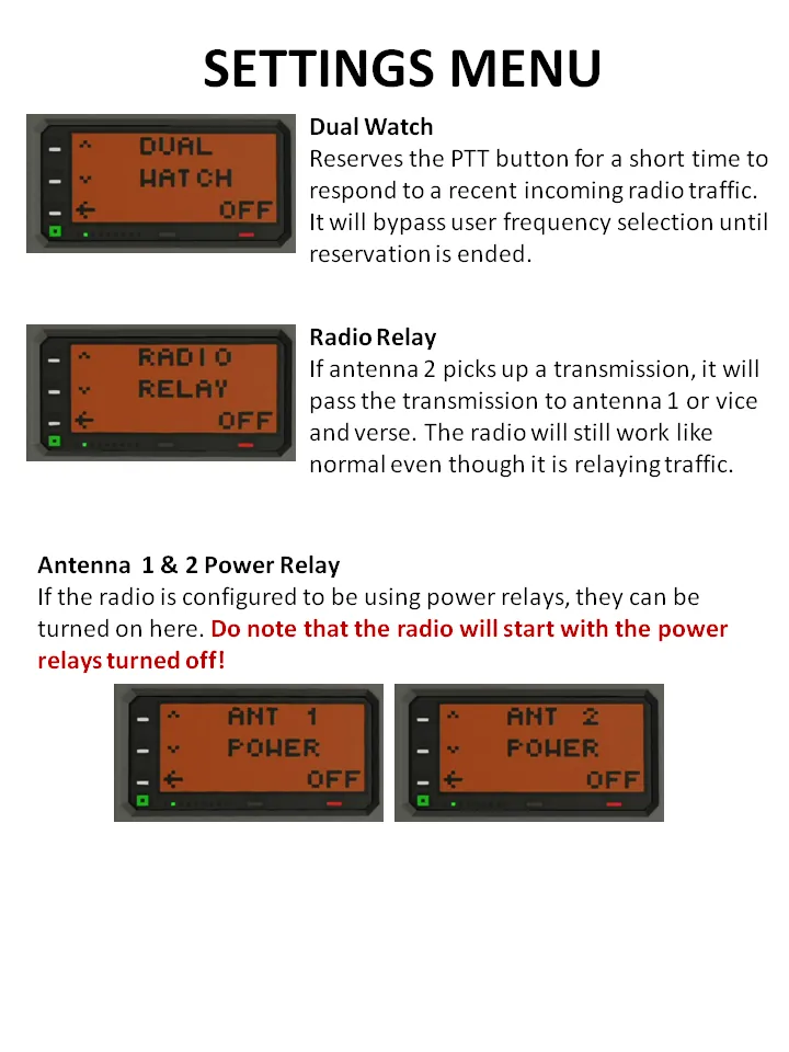 [*] Antenna 1 & 2 Power Relay Display Controls - Toggle on if you want the display have controls for power relays for the antennas in the settings menu