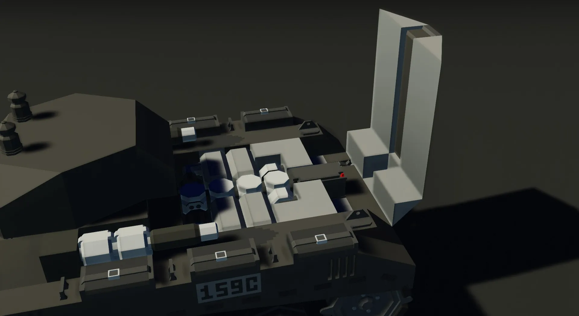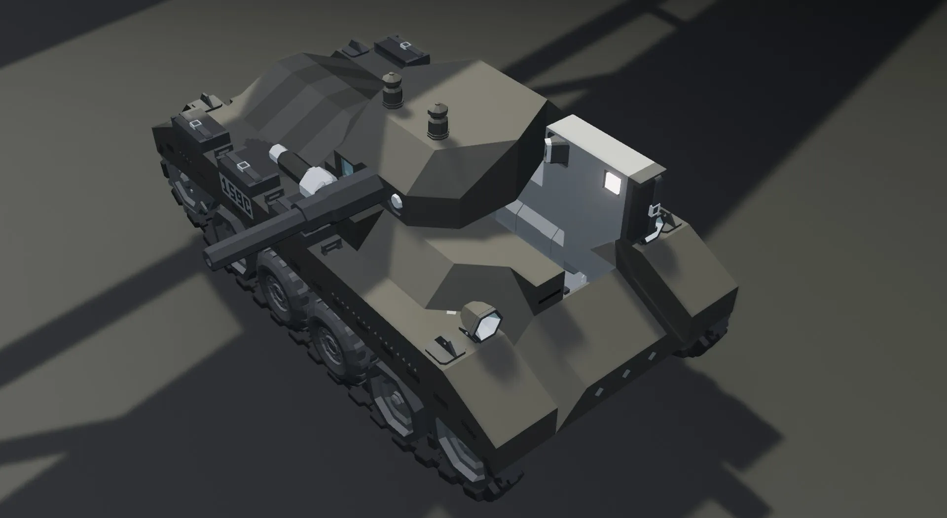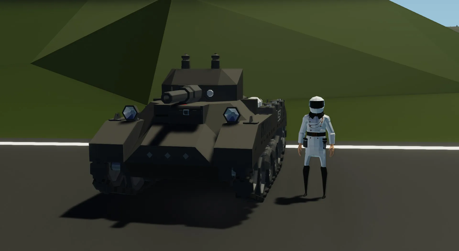 My attempt at size-accurate Valentine IX. Funnily enough during testing i managed to survive in it a barrage of heavy autocannon shells. Granted, those were AP shells but still, its got a surprisingly good survivability for its size. Also no, it doesnt use motors to drive, they only assist in engine start up - then that 14 cyl engine powers the tracks to allow it to go realistic-ish speeds