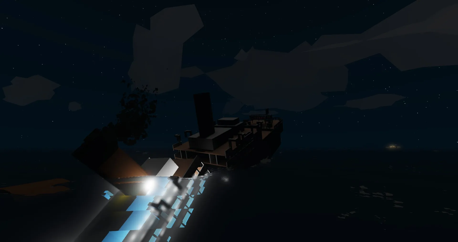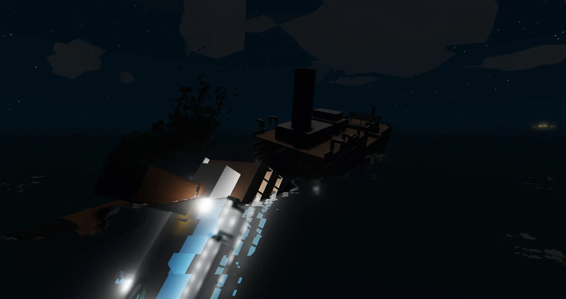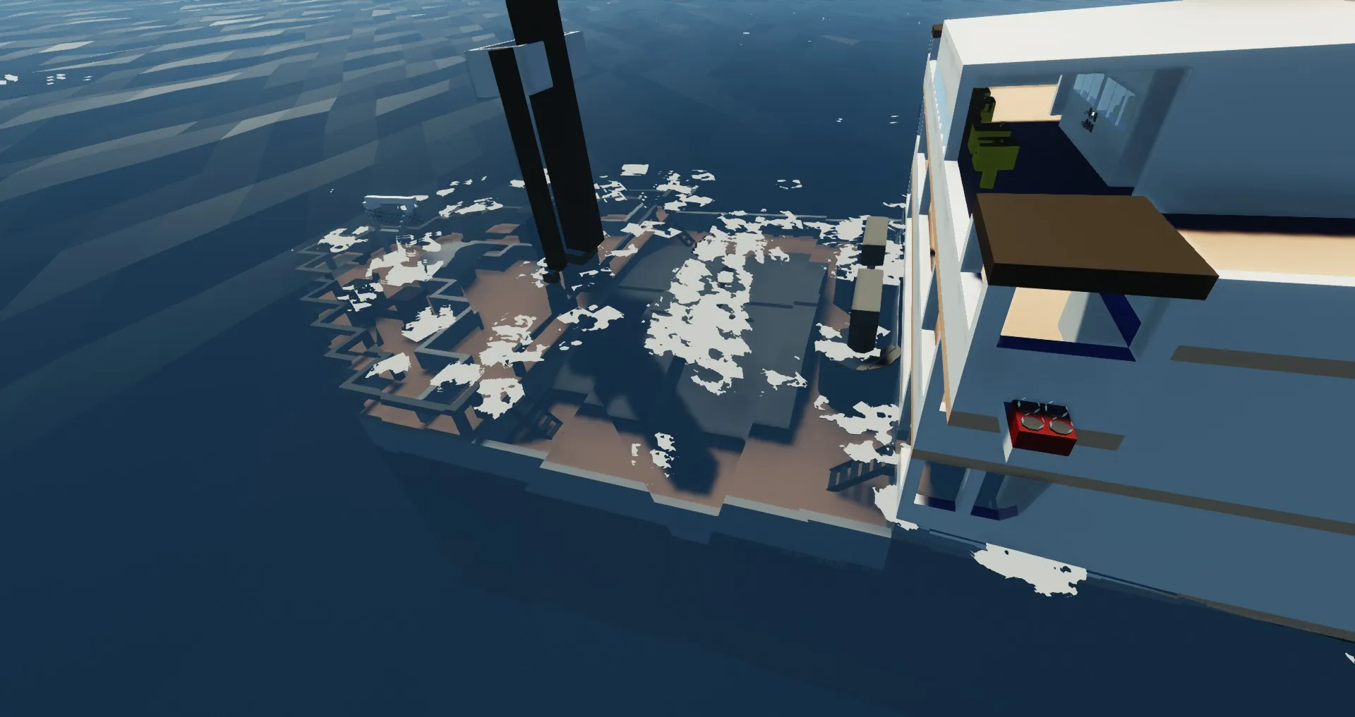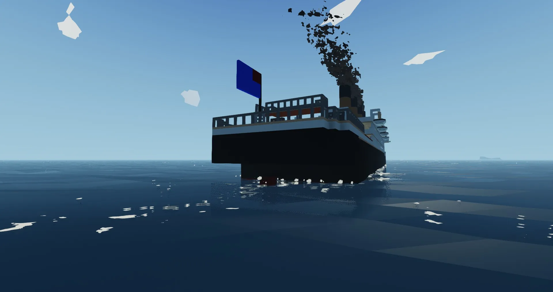 An older version of the titanic (From about 2008/2009? unsure) seen in the earlier days of roblox. simple, albeit a tad empty and spaced out. a nostalgia trip for some, an inaccurate boat for others.