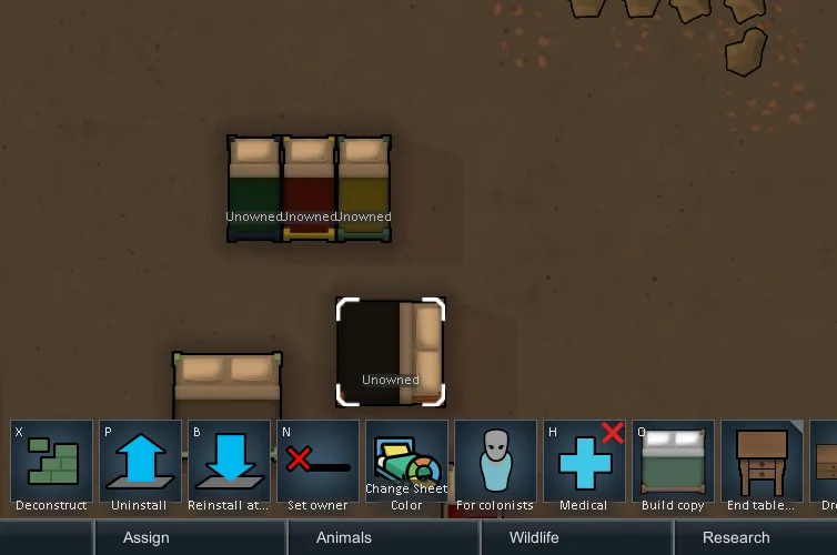 Using the same system, beds now support [b]separate coloring for the bed sheets[/b]. Works on both core and modded beds.
