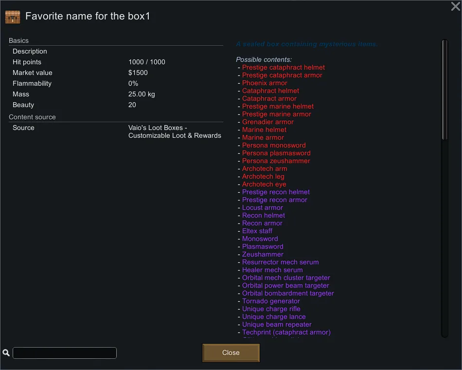 Customizable Loot Boxes for RimWorld