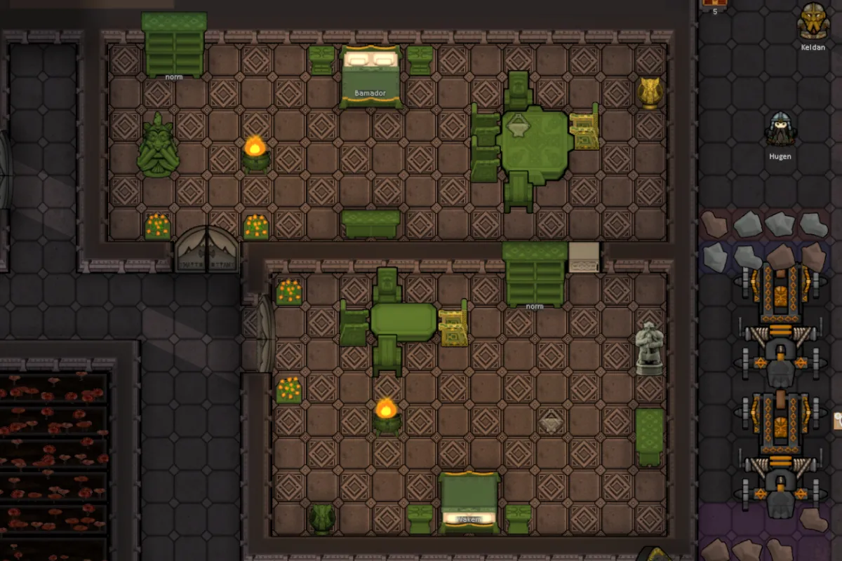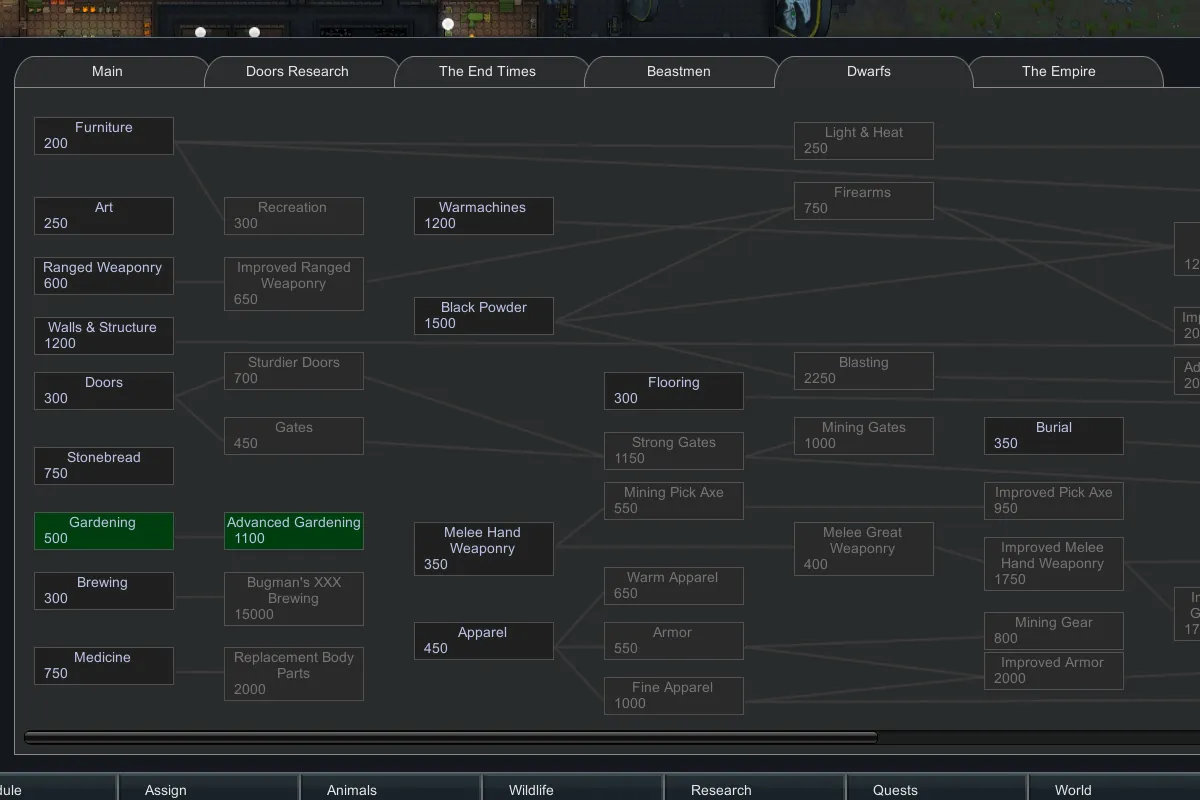 -Research, ale, tobacco, impassible map settling, furniture, floors, workbenches, statues, doors, gates, wall lights, ceiling lights, braziers, hearth, walls, decorated walls, columns, embrasures, Slayers, backstories, beards, hair dos, warmachines (grudge thrower, flame cannon, organ gun, ...), black powder, apparel (armor, shirts, pants, helmets, ...), magic weapons and armor, shields, recreation, indoor planter box, plants (barley, stoneroot, tobacco, dwarf bile mushrooms, stonesalve, ...), fermenting barrels, unique food types, gromril, names, sarcophagi, weapons (thunderer rifles, grudge raker, axes, hammers, ...), medicine and mechanical limbs, repair of weapons and apparel, reskinned work and research benches, a unique end game quest, blasting items, high bloods, thrones, and more!