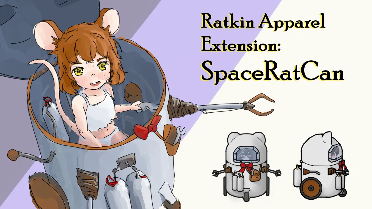 A small mod that adds a new ratkin apparel: Spaceratcan, a vacsuit that fits the ratkins' tech level. Containing a small patch that hides the ratkin ears under ratcan.
