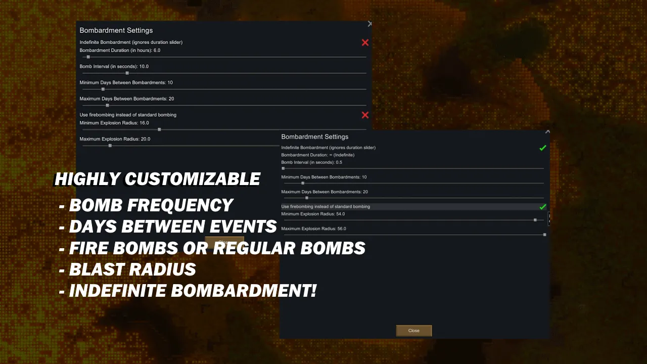 This mod adds a [b]highly customizable[/b] bombardment event to the game.