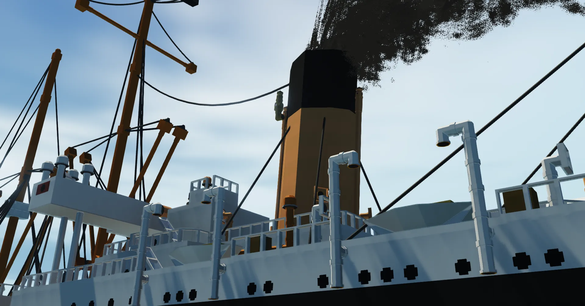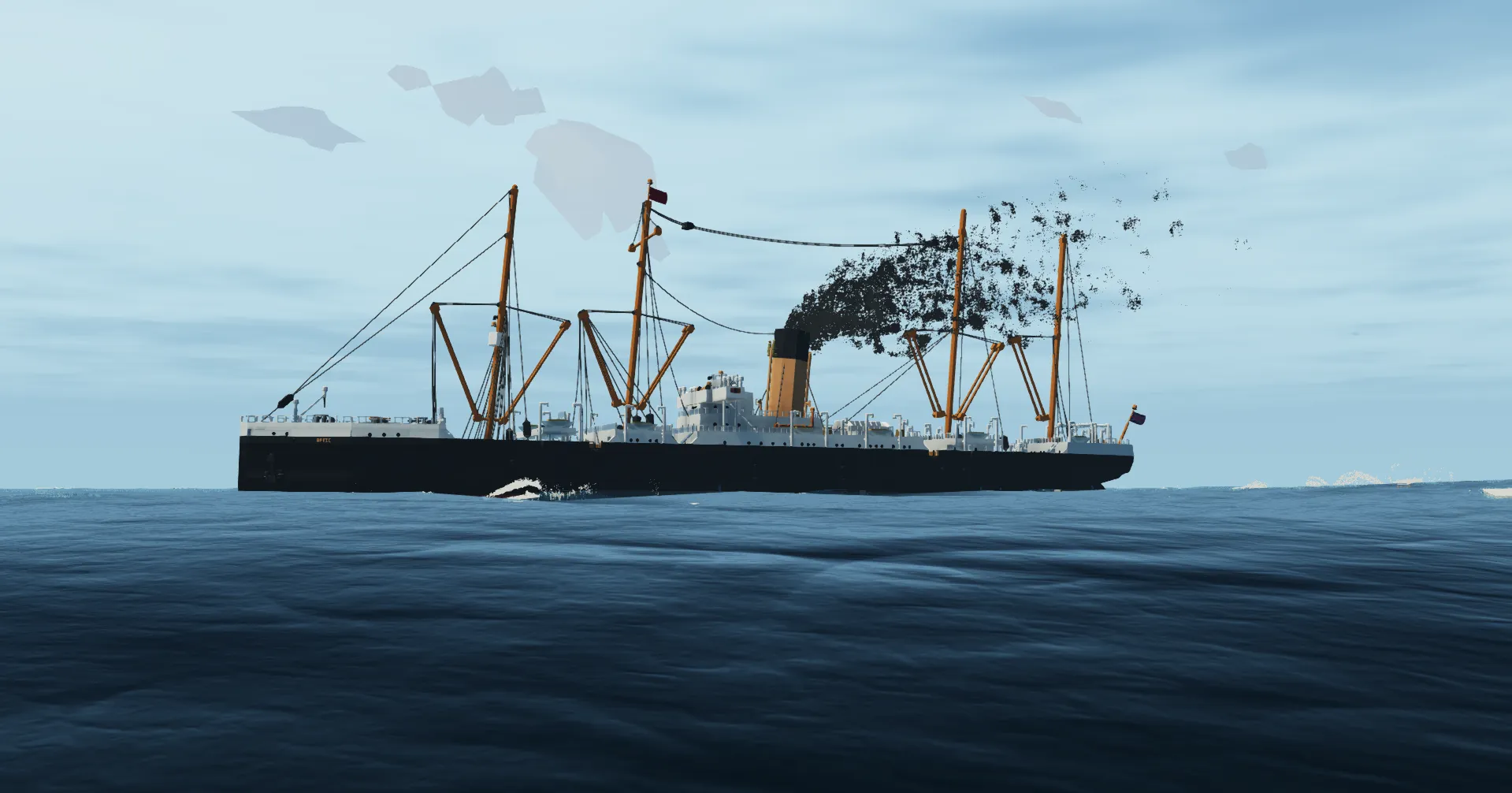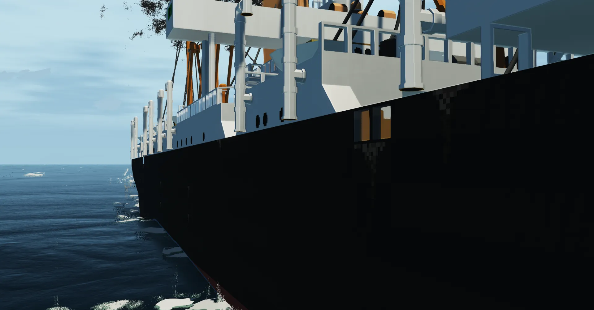 Spawn the ship from any workbench and get onboard, theres an entrance hatch in the cargo hatch between the superstructure island and the poop deck that takes you into the Control Room, after, just throttle her up using 'W', the throttle is sticky so you dont need to hold it and just hold S until the throttle goes into the '-' to reverse.