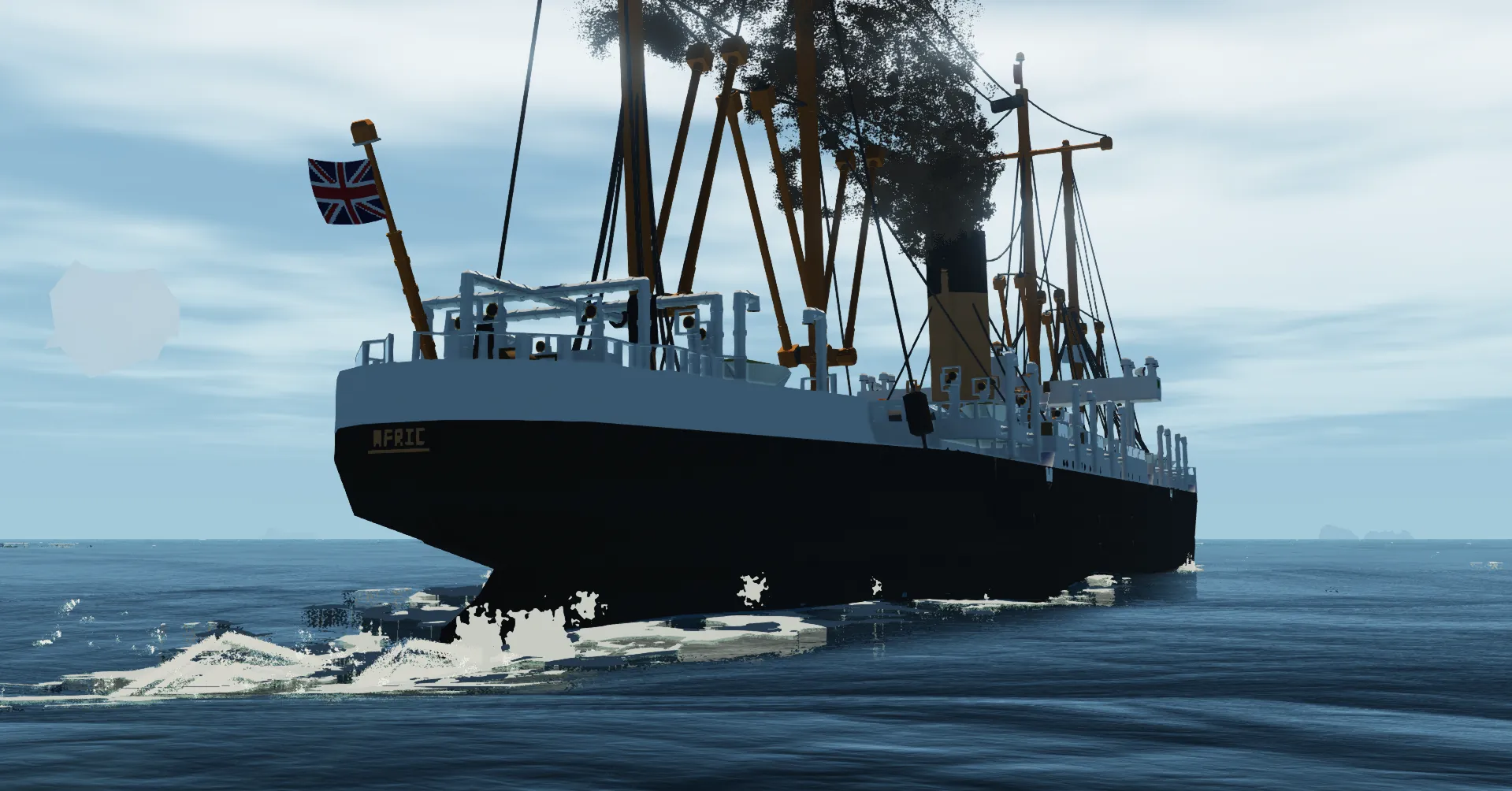 This is a 1:4 scale recreation of the S.S. ' Afric ' of 1899! She was a cargo-liner for the White Star Line, a member of the 'Jubilee' Class and worked on White Star's 'Southampton - Capetown - Sydney' route.