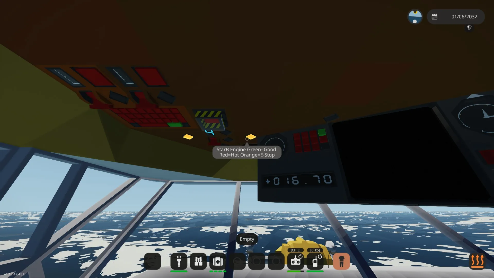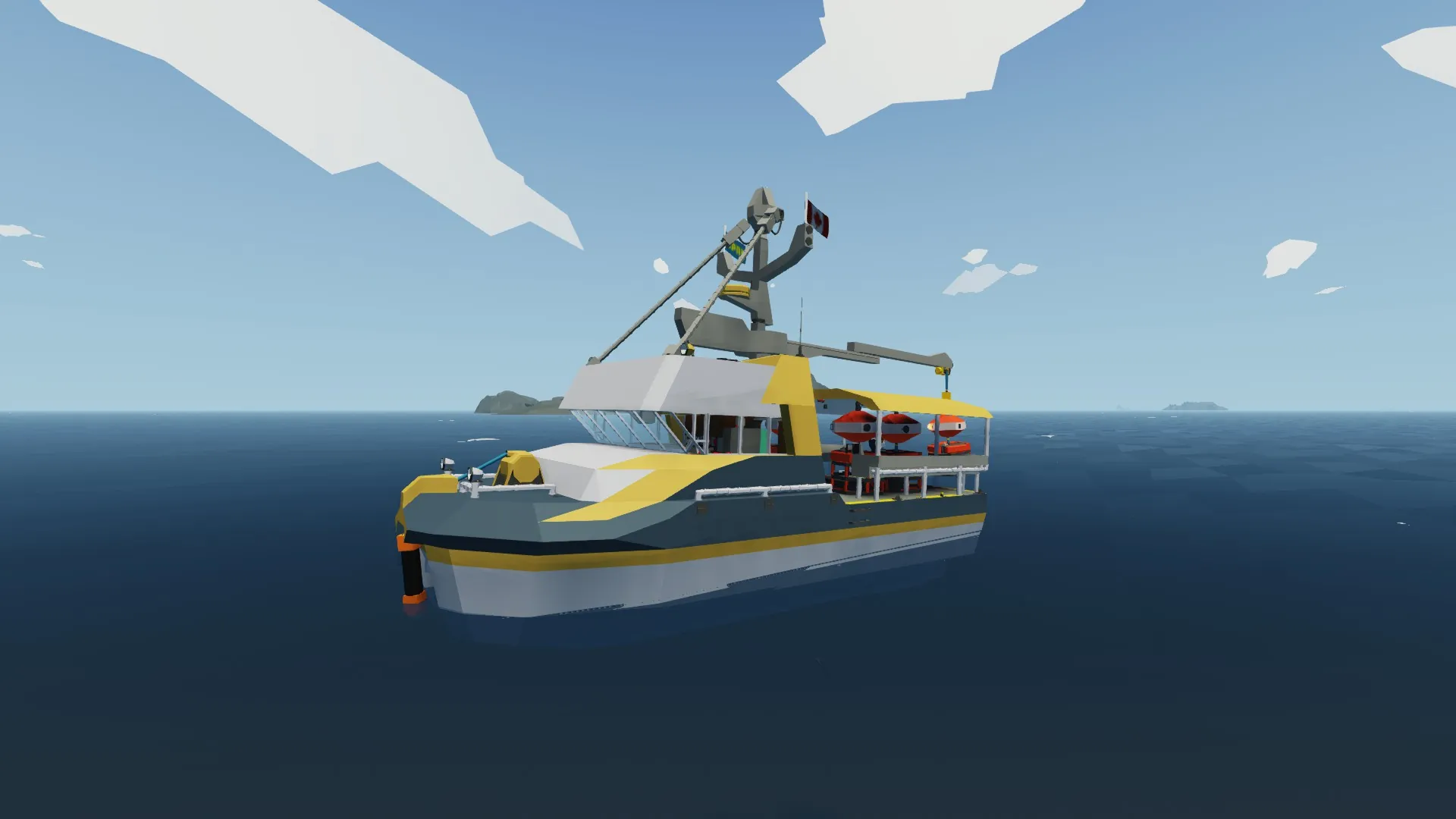 - Built in HUD display on Helm and Crane Handle (Knots, Diesel Level, Heading)