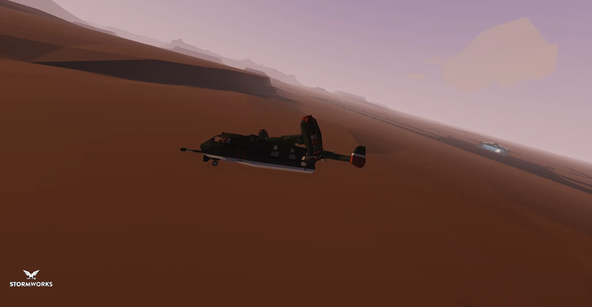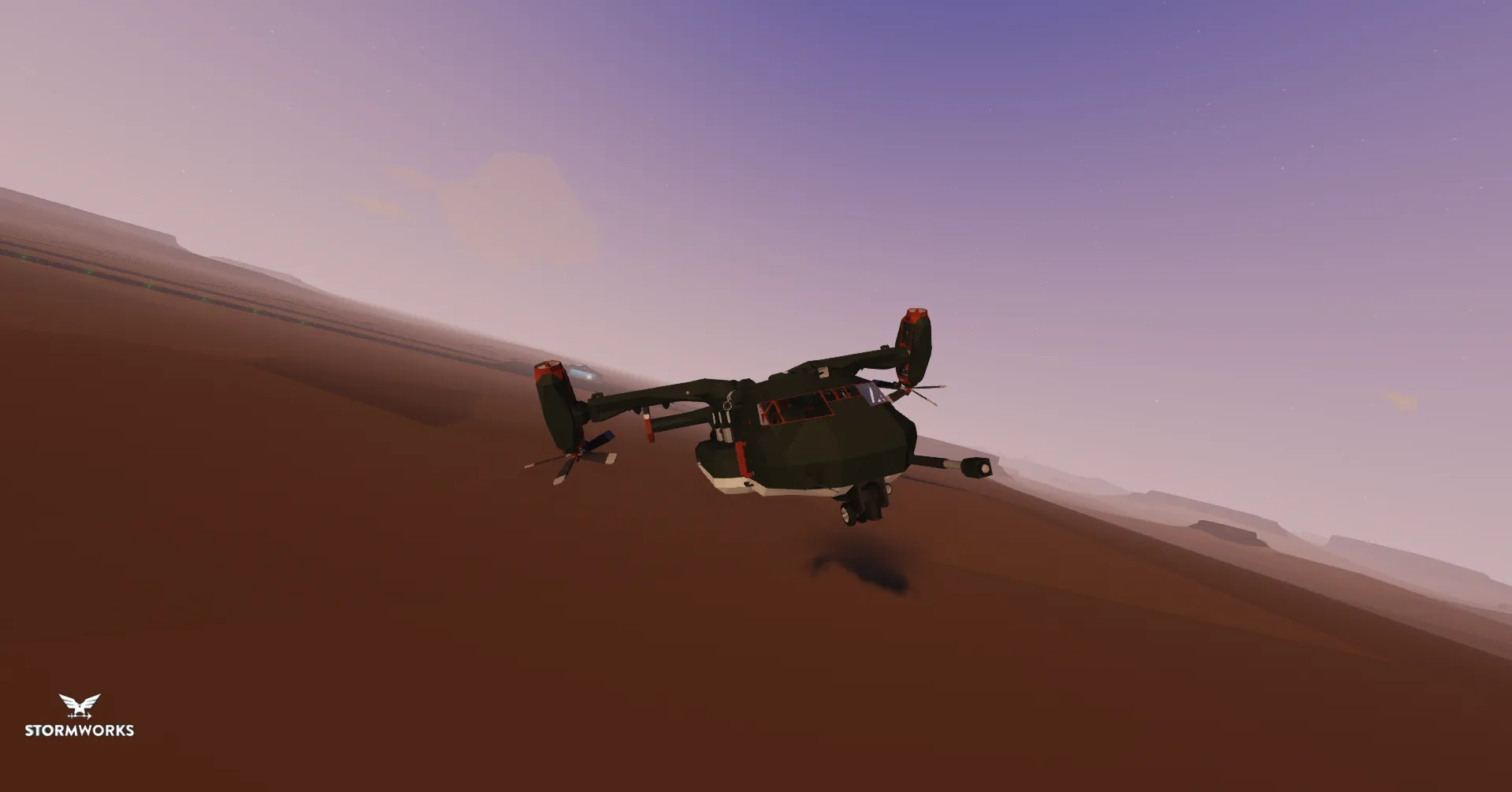 Its also fitted with 4 hardpoint weapon racks [Specified in the Co-Pilot Control] with 2 autocannons with a large quantity of rounds that can provide ground cover support or air-to-air combat.