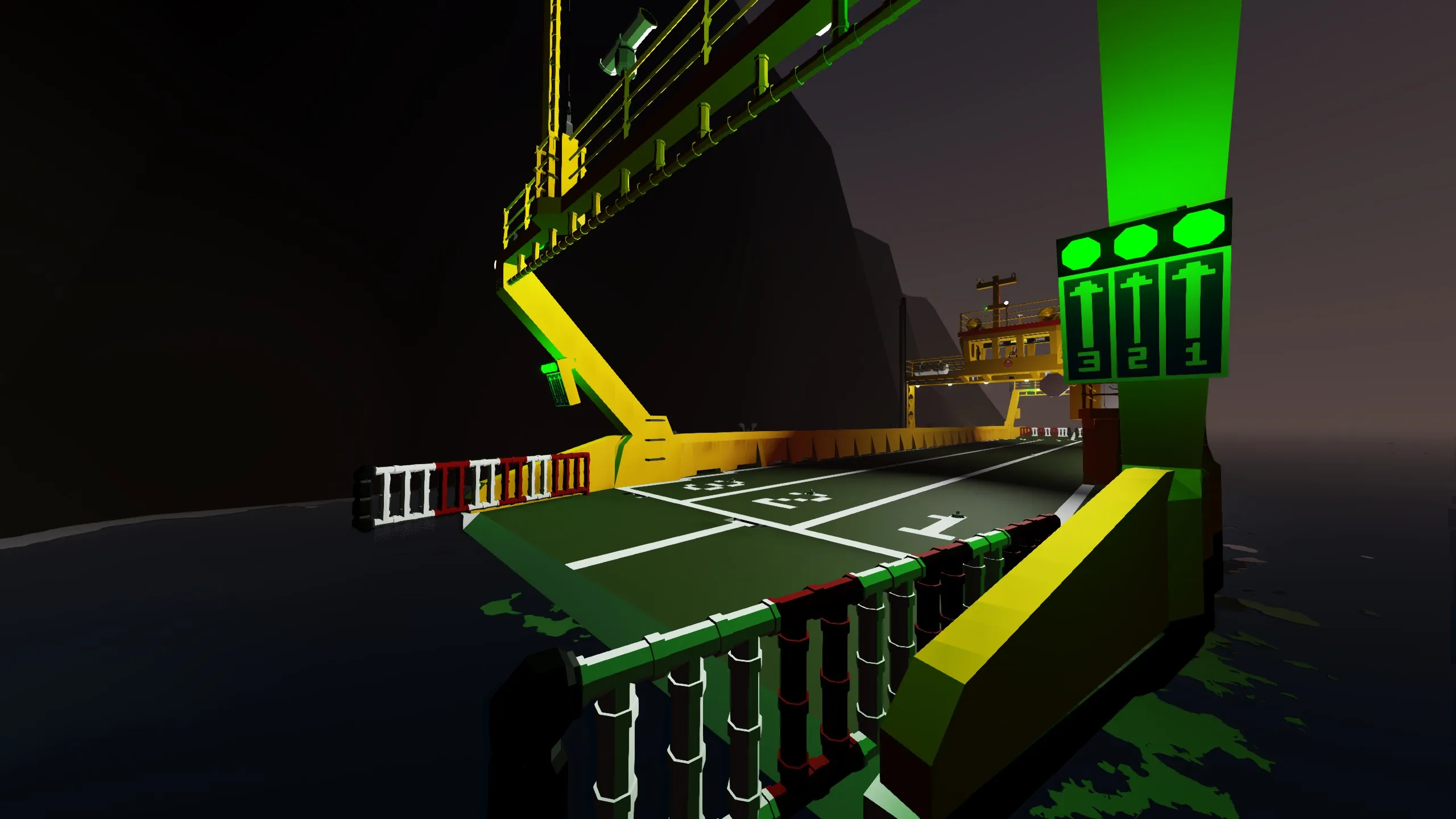 - fold out the ramp and open the gates, turn on the green light