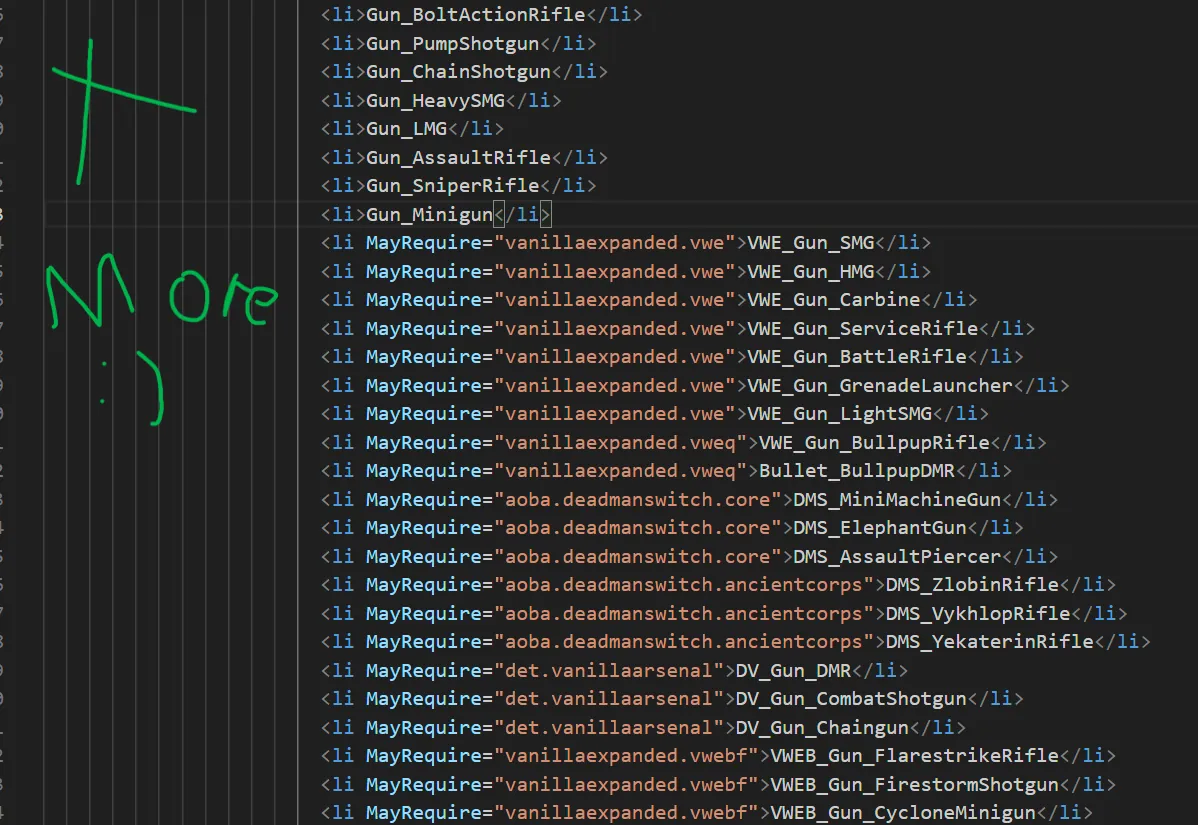 • [url=https://steamcommunity.com/sharedfiles/filedetails/?id=1814383360]Vanilla Weapons Expanded[/url]