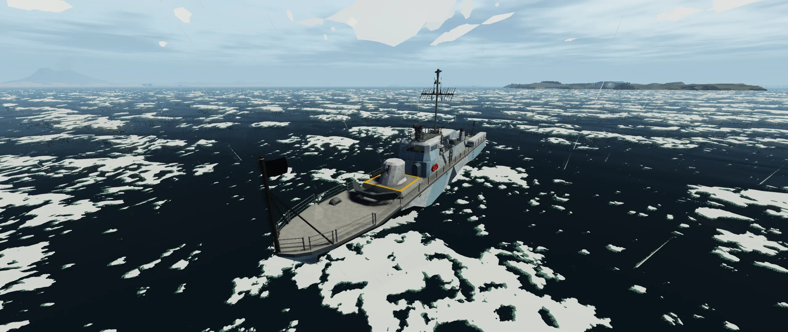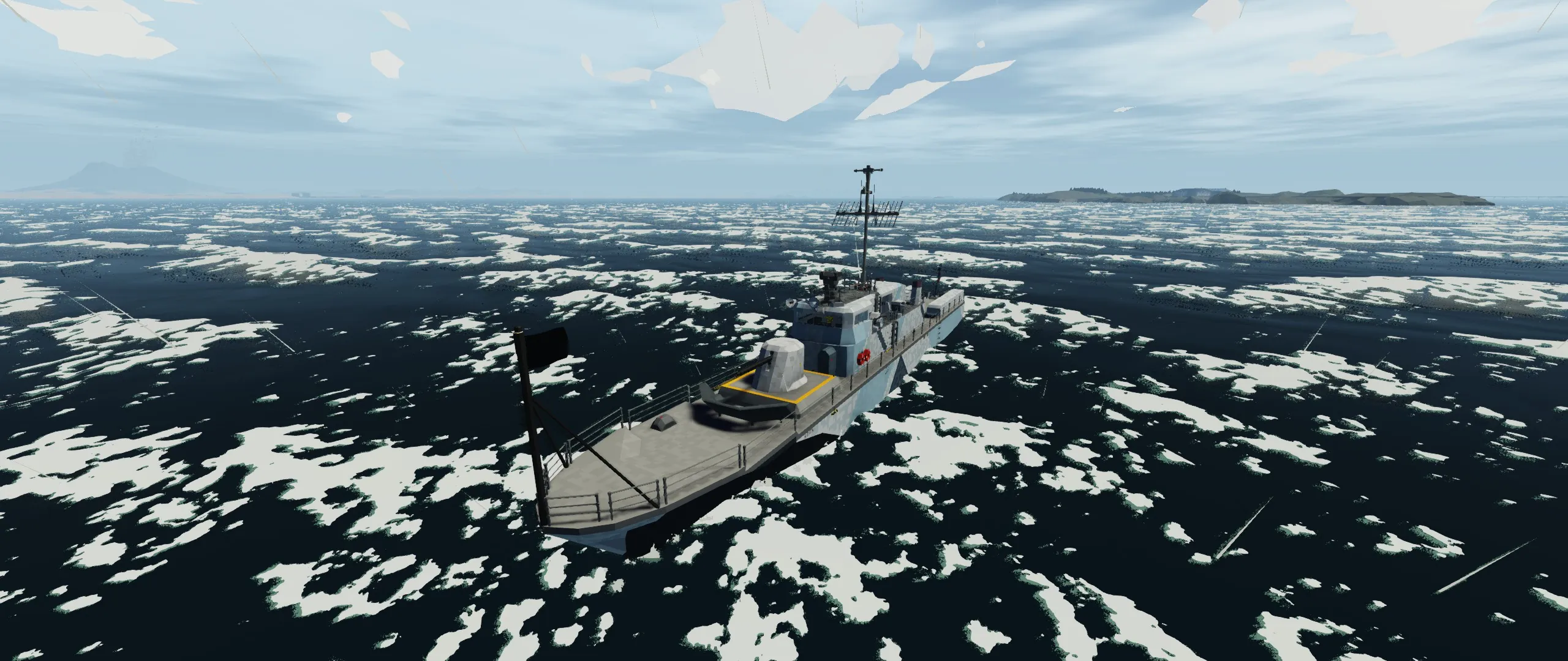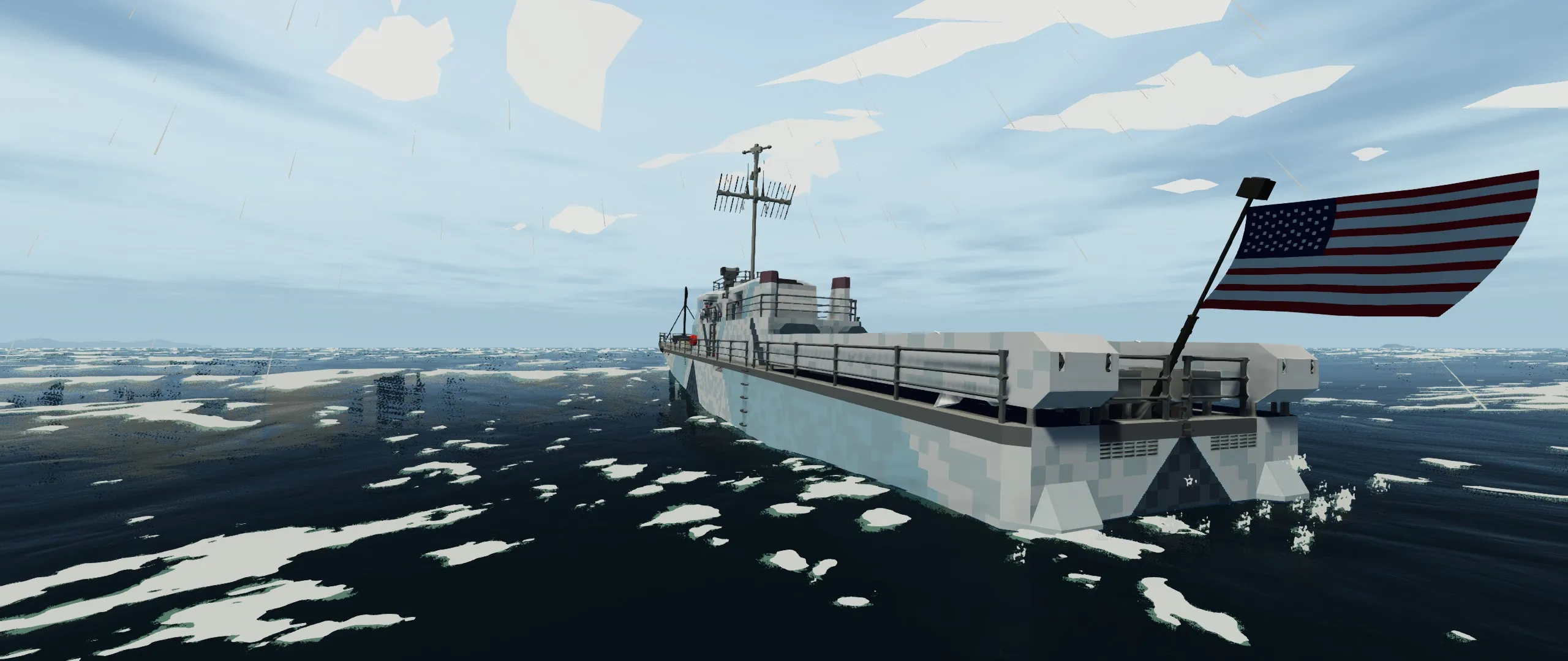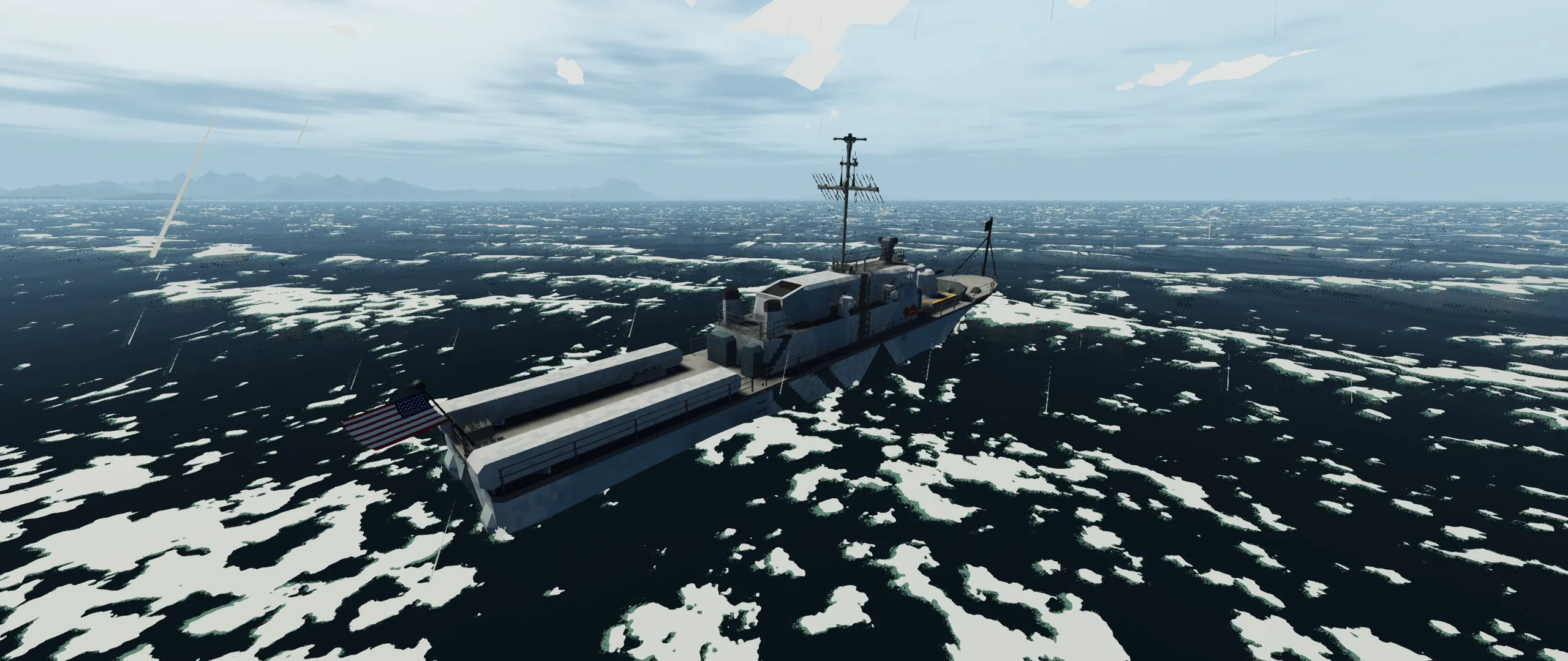 The [b]USS Dougless[/b] is a 1960s-era multi-role frigate built for direct operator control and precision-based warfare. Housing a small crew of just 25, it blends diesel reliability with turbine acceleration, giving it power and speed in a compact frame.