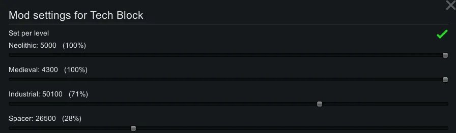 No longer will tribals be able to instantly start researching electricity the moment they are safe from the blood machines. This mod adds new technologies to limit your progress as well as others to advance your tech level. Fully dynamic and proportional numbers so the more researches that are in a certain tech level the more you will be required to research before you can advance. Many editable values to customize and can expose more to the glory of sliders if needed in the future.