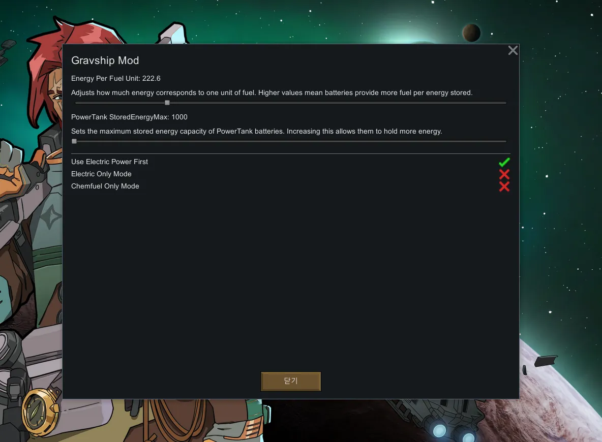 This mod upgrades the functionality of the Grav Engine by enabling it to use electric power as an alternative to chemfuel. Gravships now operate on a hybrid system, drawing energy directly from fuel tanks or batteries.