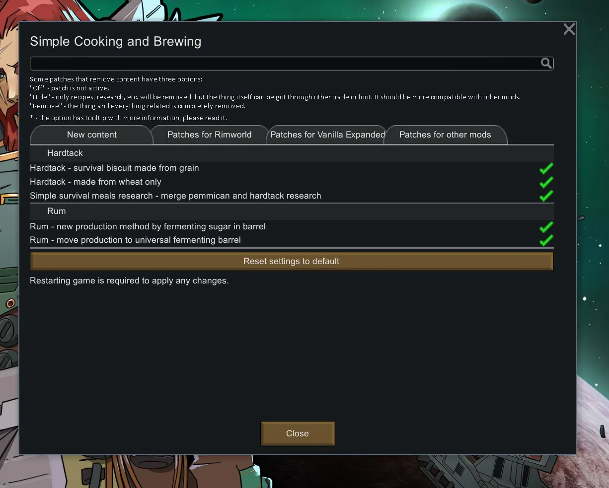 The mod adds options to streamline, alter or simplify cooking, brewing and all things related in vanilla, Vanilla Expanded and few other mods. [b]Everything can be toggled in mod options[/b] according to your preferences.