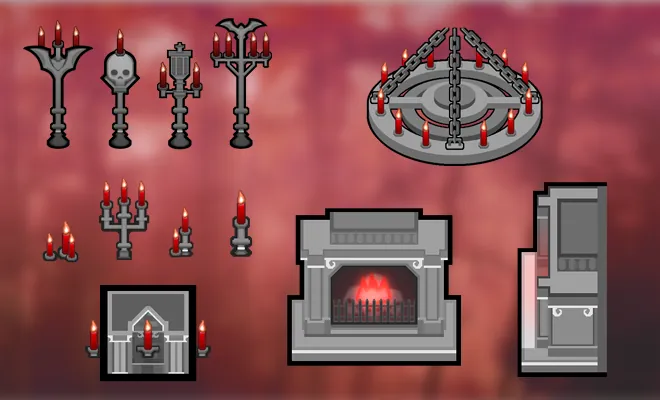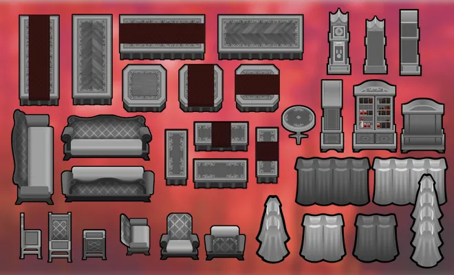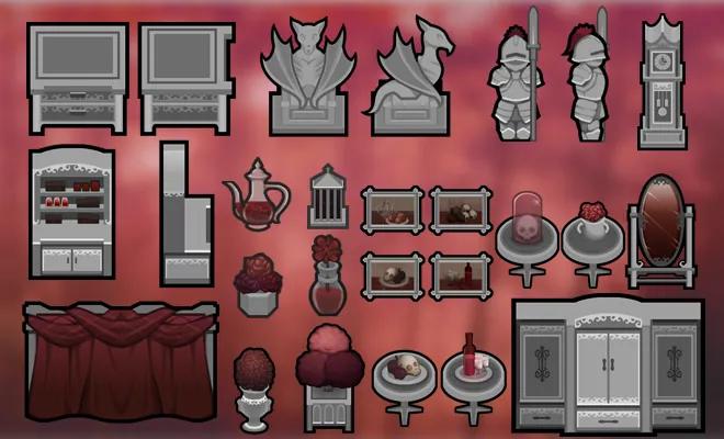This furniture contains 40 vampire castle style objects, suitable for you to create your castle corridor, hall, or tomb.
