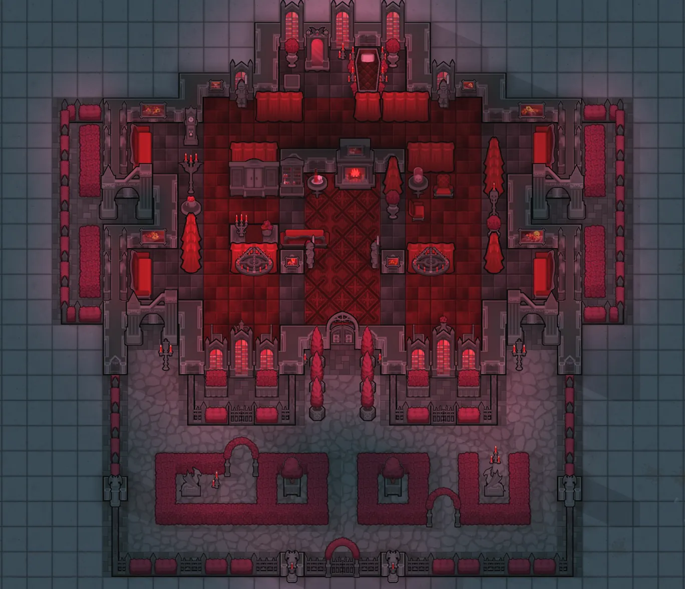 增加了哥特吸血鬼风格的家具装饰以及墙体结构等