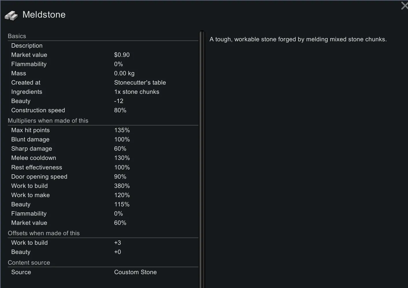 这个MOD只是为了方便切石头,没有夸张的数值,基本保持与原版基础石材一致