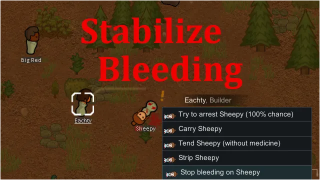 Adds a "Stop bleeding on [Pawn]" option to the right-click context menu when selecting a doctor and clicking on a downed pawn with bleeding wounds.