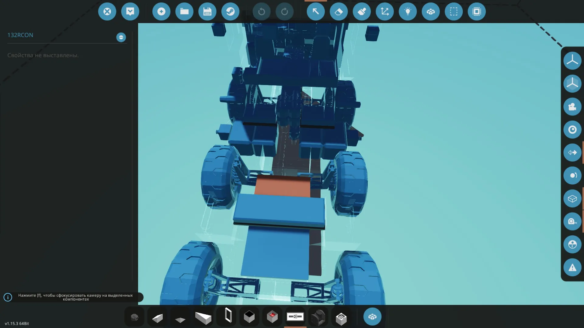 16 gears L/N/H Gear C - const gear 2 winches, heating, light, mirrors, AT. Max spd is unknown, after 55m/s the car takes off Microcontroller on photo can be edited to create cargo modules