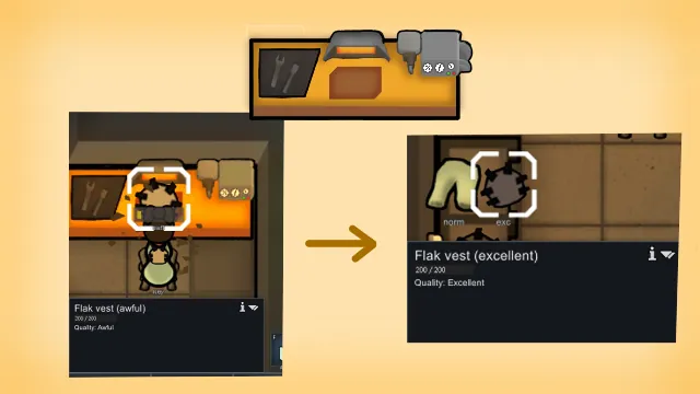 I used [url=https://steamcommunity.com/sharedfiles/filedetails/?id=3036866148&searchtext=Tinkering] BK's Tinkering [/url] as a basis, but removed the VFE Ancients requirement and changed it to depend on the crafter's skill rather than a flat +1 quality.