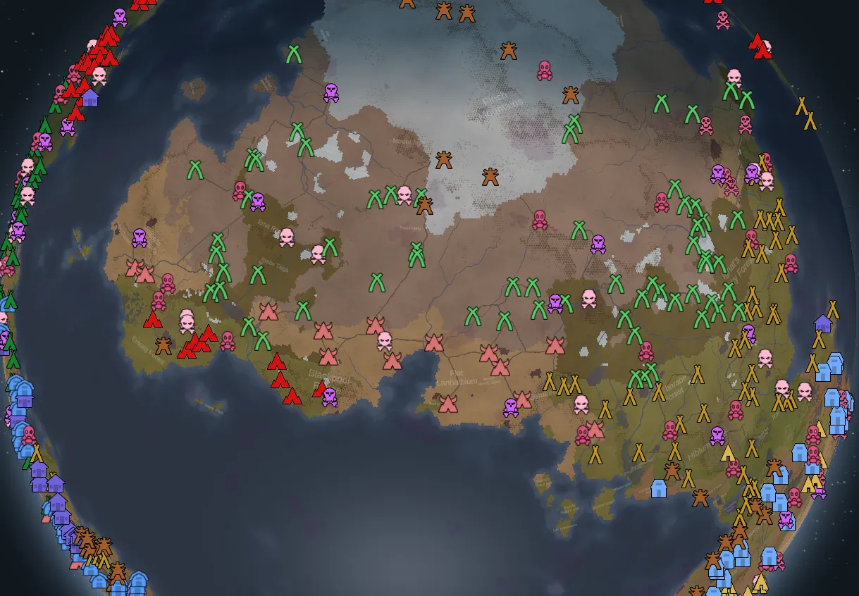 Instead of being scattered randomly across the planet, faction settlements are grouped closer together so they form clusters. This makes the world map look more like defined nations rather than isolated outposts.