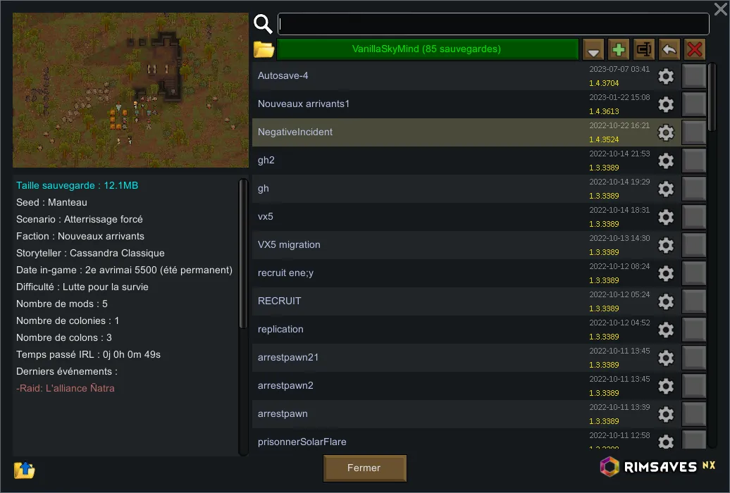 No more mess with your multiple colonies saves, autosaves overwrites,... now simply organize your saves into folders with RimSaves.
