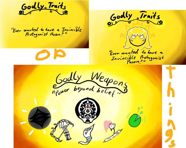 Okay, this is a nice little mod is primarily a port [url=https://steamcommunity.com/sharedfiles/filedetails/?id=3020604219]Godly Traits[/url] and [url=https://steamcommunity.com/sharedfiles/filedetails/?id=3025145795]Godly Weapons[/url], which are 2 great mods by [url=https://steamcommunity.com/profiles/76561198062670691/]Torodo[/url]. Alas, due to life (and a side effect of what makes these mods so good), they might not be updated, and if they are, it will be a while. So, I asked if I could port them, and, well, here we are!