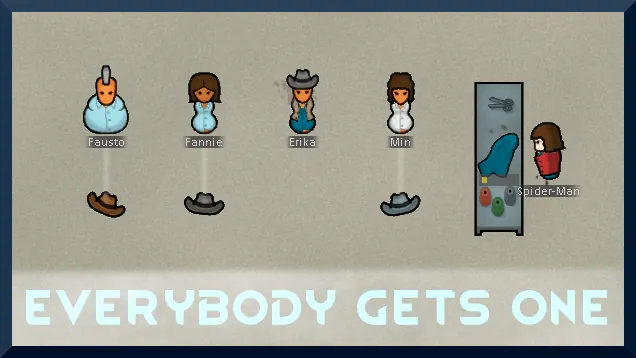- "One per colonist + X" : Set it "+2" to keep two *extra* hats around, "-2" for hats for everyone but two people (* See warning below)