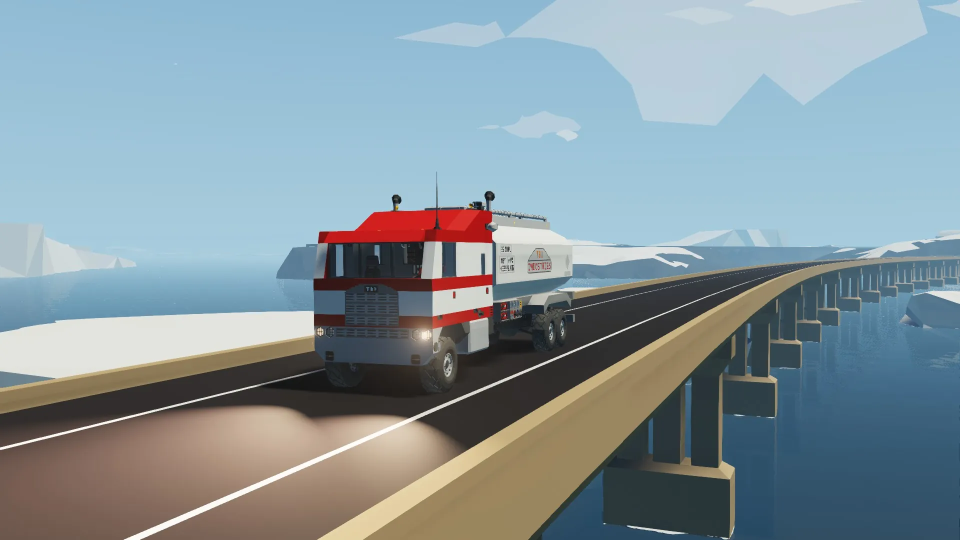 A tanker built on the same frame as my other Cab-Overs, with a pump panel on the driver side. The tanker has 2 seperate tanks, with the ability to equilize fluid levels. The pumps only allow for pumping out, but features an inlet on the top for loading.