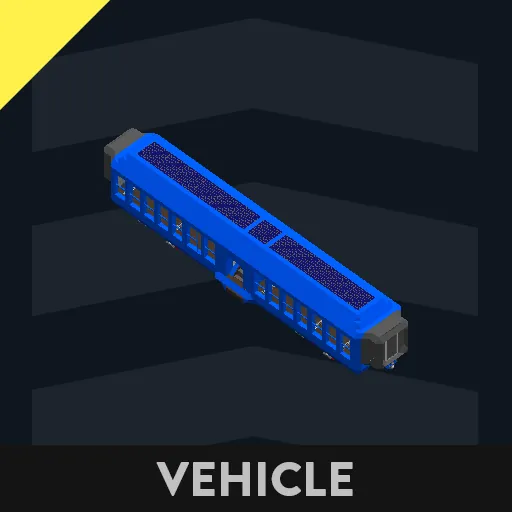 An empty train carriage suitable for passenger use, equipped with stairs, drop-steps, inter-carriage connector tunnels automatic heating and interior lighting, and a slightly extended frame to make the front and rear sections the same size.