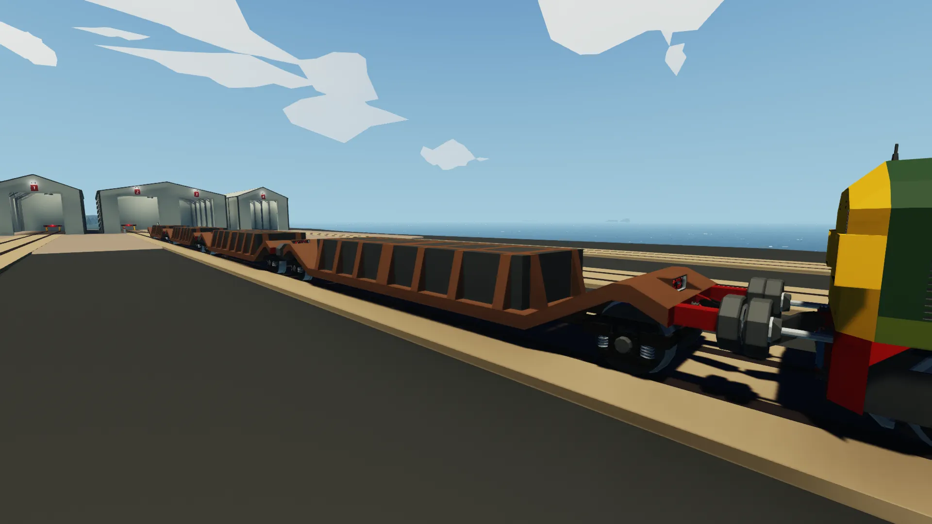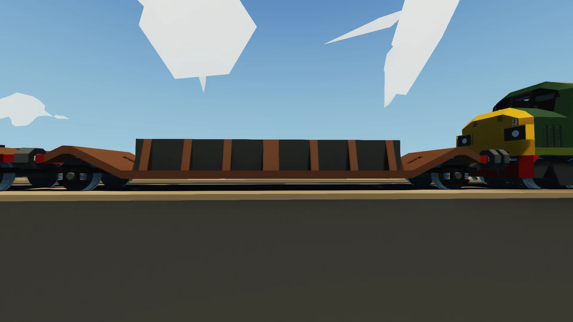 This flatbed uses a hose pipe to act as a air brake pipe. Brakes are fully applied at 0 psi, and fully released at 21 psi. There is a manual brake release key switch on the side which allows the brakes to be permanently released. This is recommended to be used with:[url=https://steamcommunity.com/sharedfiles/filedetails/?id=3574731399] Class 40 Diesel Loco [/url]