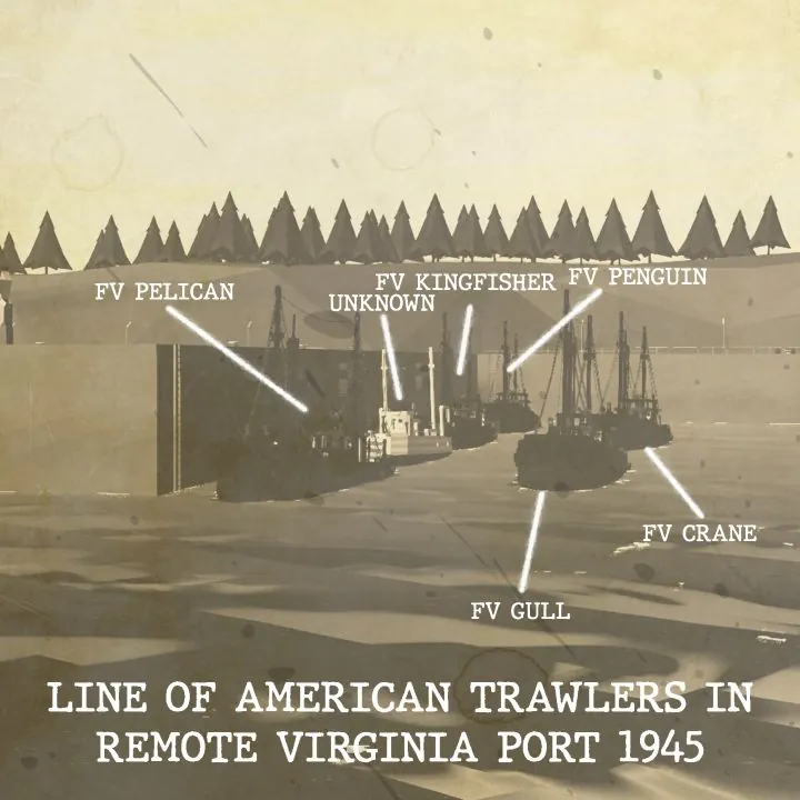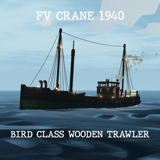 Built in Mobile in 1940, the FV Crane was the 5th Bird Class Trawler, a type of wooden trawler design built by the John Mitch Co. from 1939 to 1941, of which 13 were built. After she was built, the Crane was delivered to her owners in Virginia and served an 11-year career fishing off the eastern seaboard. However, on the night of November 11th, 1951, the Crane, whilst battling a windstorm around 30 miles off the coast of Delaware, foundered in the Atlantic after springing leaks in her General Storage and her fish hold. A mayday was sent; however, when the coast guard arrived at the wrecksite, 3 of her 6 crew had perished. Unlike the 3 survivors, these men, including the Captain and both Engineers, didn't make it out of the frigid water and into either the ship's lifeboat or any of the 4 Carley floats. Both Deckhands and the Mate survived. Crane was also 1 of 7 of the Bird Class Trawlers to be lost. The other 6 were the Pelican, and the Gall that were lost in 1942 and 1944 due to torpedo attacks, the Gull which was sunk due to a mine also in 1944, the Kingfisher which went missing after leaving Chester for the fishing grounds and was presumed lost in a storm like the Crane, and the Penguin which was converted to a coastal cargo ship and sold to German owners. In 1956, the Penguin, now renamed the Anna, went missing off the coast of Denmark and was presumed lost with all hands. The wreck of the Crane was discovered in 1990 whilst researchers were looking for a different wreck. She is lying on her side in a sorry state, her wooden hull, along with her smokestack, is all that remains, whilst her pilot house and masts were either ripped off or have rotted.