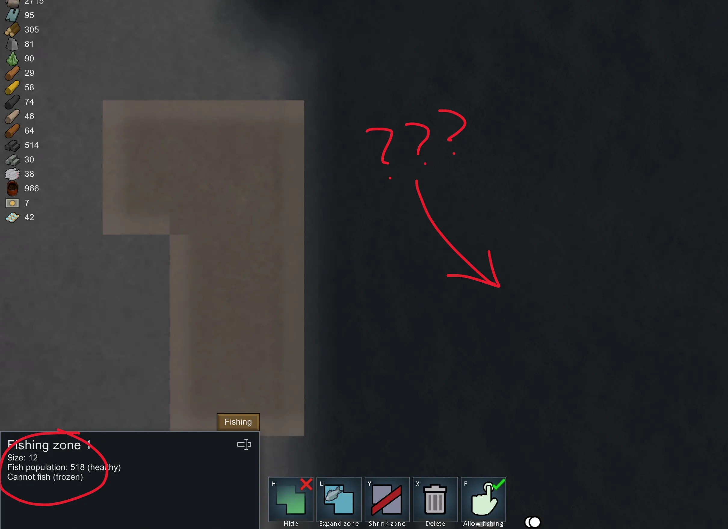 In Rimworld: Odyssey, shallow water can freeze over, stopping your starving colonists from fishing at fishing zones. Inexplicably, their pathetic colonist brains are too puny to entertain the idea of standing at the edge of the frozen shallow water and fishing in deep water. This mod allows you to zone deep water as fishing zones, allowing your colonists to fish even in the coldest of temperatures. For obvious reasons, your colonists will not be able to fish at a fishing zone if it is surrounded by deep water, so make sure to zone next to walkable terrain. I have not tested for compatibility, but as long as the mod doesn't mess specifically with zoning fishing zones it should be fine.