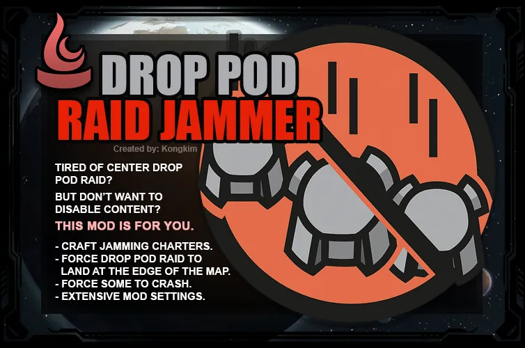 Drop Pod Raid Jamming redefines how you defend against enemy drop pod raids in RimWorld! Activate a signal jamming protocol from your Comm Console to force enemy pods to land at the map edge, with a chance to crash and devastate invaders. Designed for full compatibility, clear settings, and no disruption to your existing gameplay.