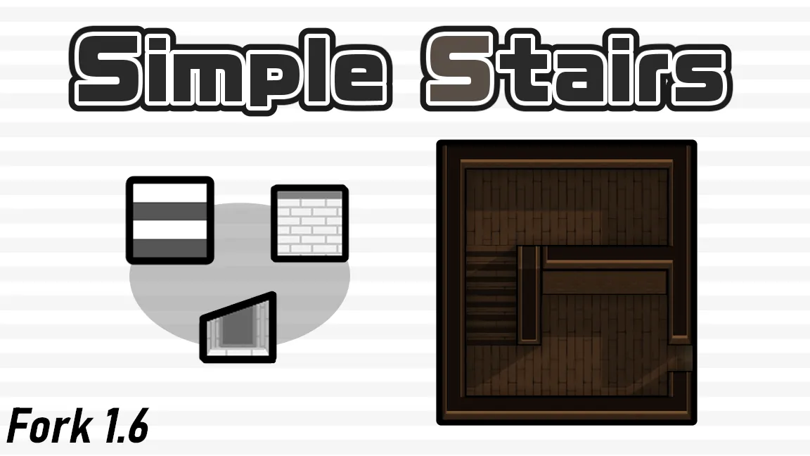 This is a [b]fork[/b] of the [url=https://steamcommunity.com/sharedfiles/filedetails/?id=2926310517]original "SimpleStairs" mod[/url] for RimWorld, updated to support [b]version 1.6[/b].
