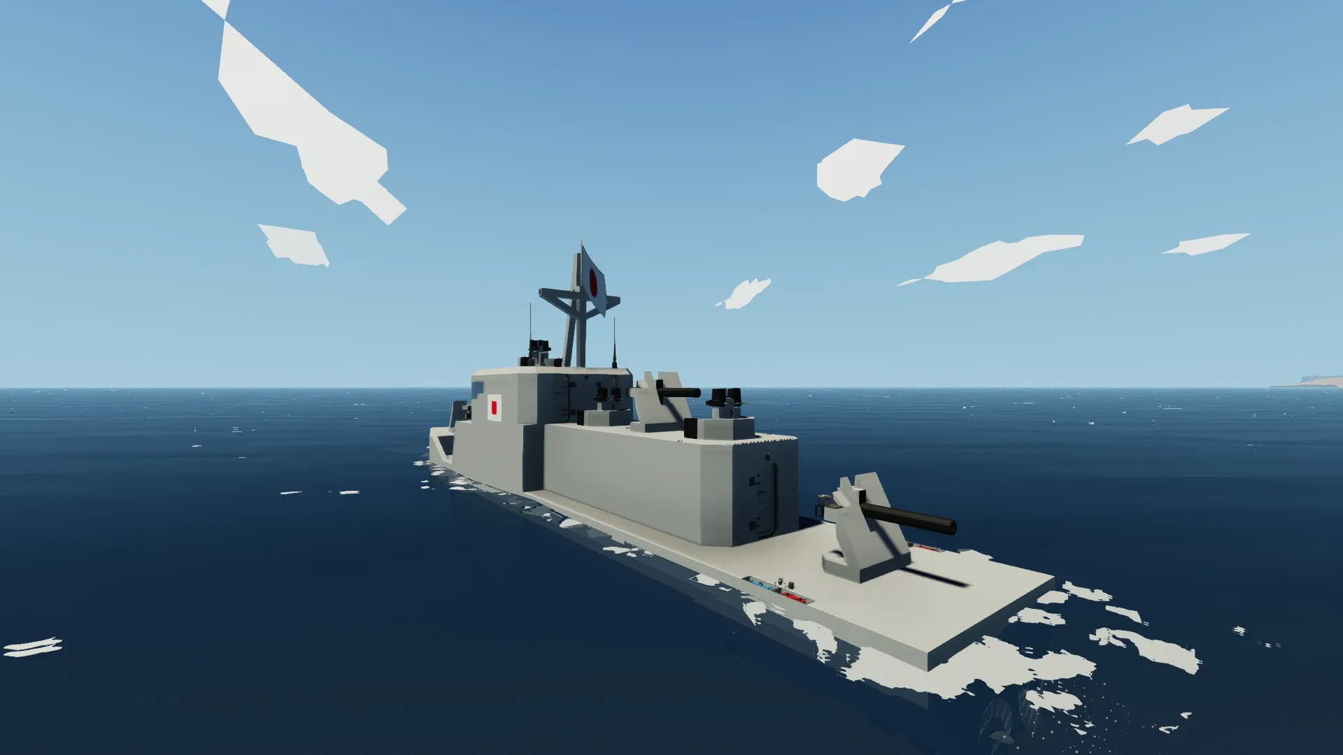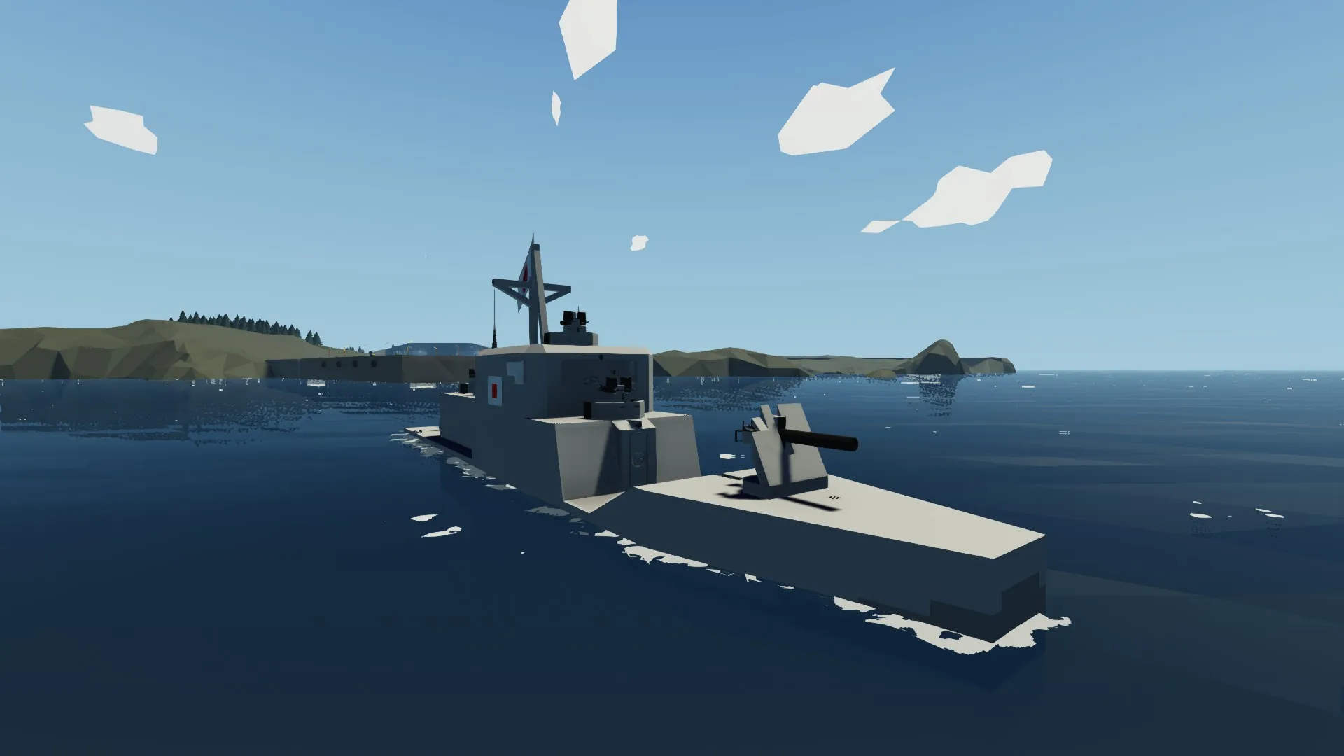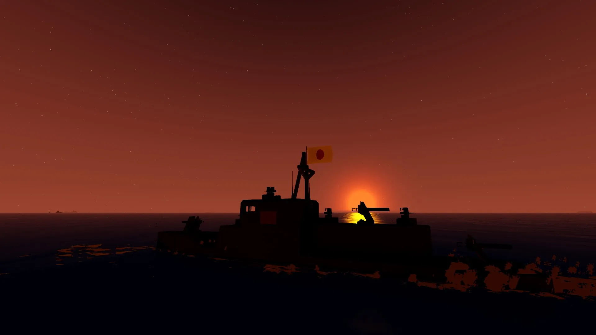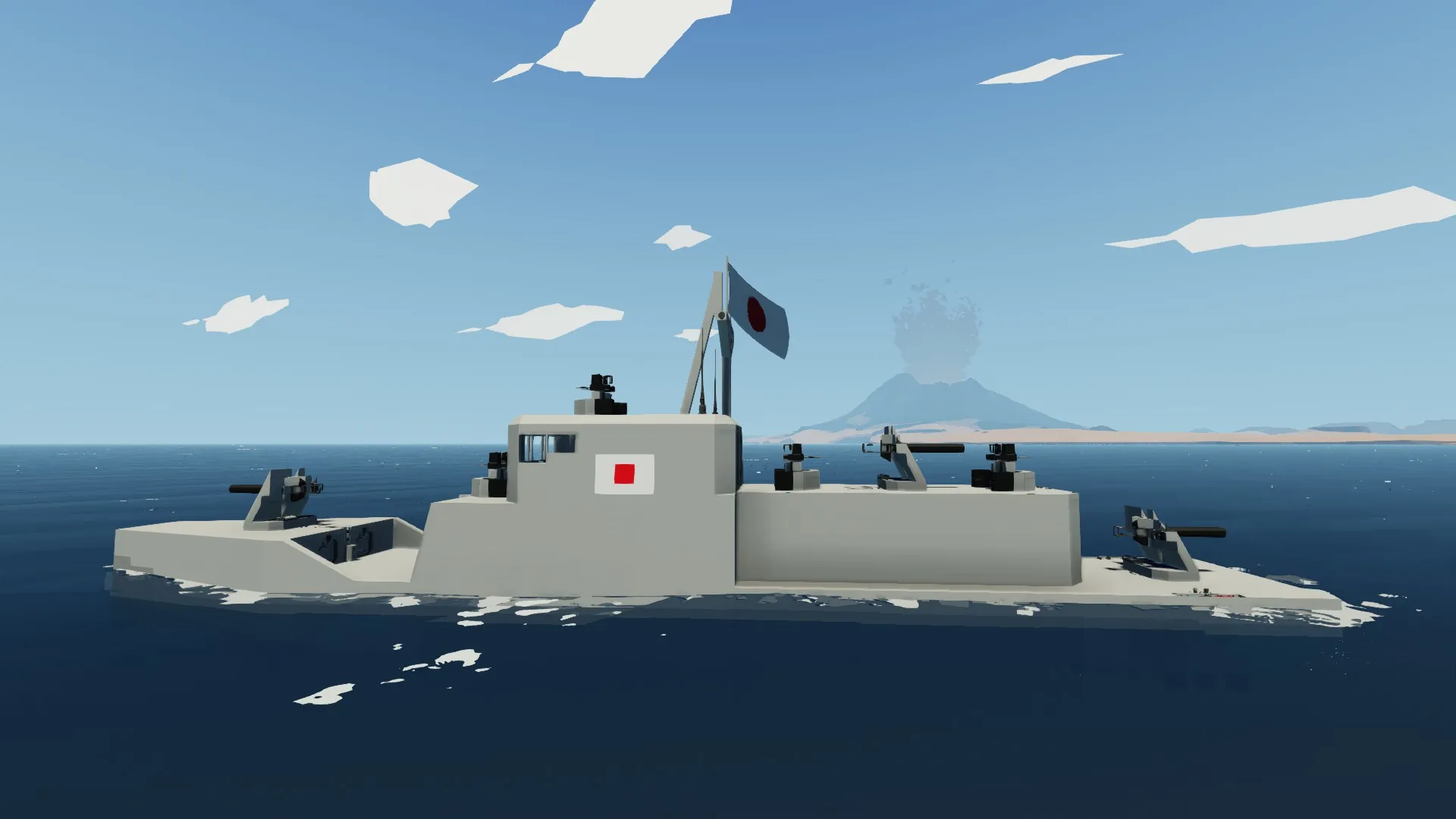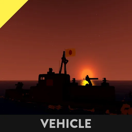 This is a Japanese cruiser set in the early years of war. It has 3 main armaments, all 60 Milimeter Cannons. With 4 Type 92 MG mounts for anti-air and small boat suppression capacity. All the guns are lookaim, so very easy to use. Minimum amount of crew members required for efficiency; 3, Captain, Main armament gunner, Main armament loader. Maximum: 14. 1 Captain 1 Comms Officer 1 Engine Control Officer/Damage Control Officer 3 Main Armament Gunners 3 Main Armament Loaders 4 Type 92 Machine Gunners [tags, ignore] Boat, Japanese, Cruiser, Battleship, Destroyer, Battle, Weapons, Sea