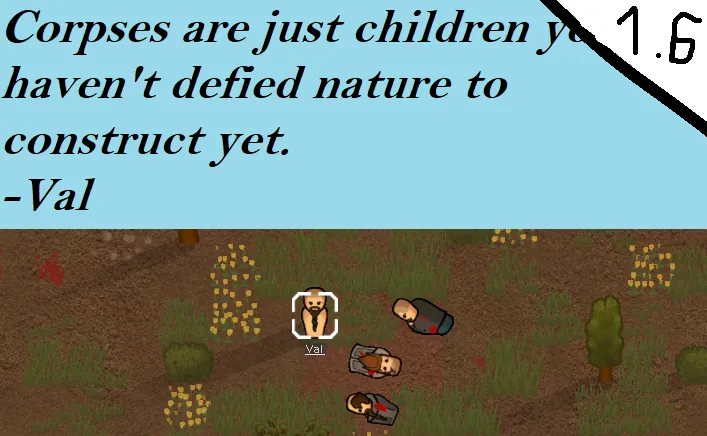 Corpse children, for when you're tired of not making new colonists from the bodies of the fallen. Corpse child is a backstory that forces a trait; pawns with the trait allow new menu options when right-clicking on downed or dead pawns. There are a few options: