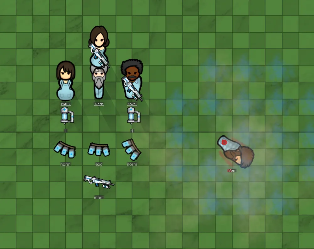 [*] Medical Stim: A single-use auto-injector filled with a potent cocktail of coagulants and regenerative stimulants. When administered, it dramatically slows blood loss and enhances the body's natural healing factor. The effects are powerful but short-lived. Pawns can also use the Stim on themselves while down and not unconscious for those emergency needs.