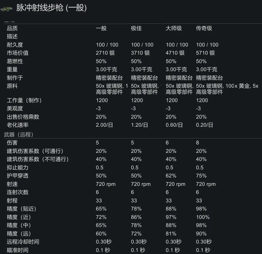 提升材料消耗的同时,参考了其他的枪械mod将数据调整得更加适配科技水平的强度,使其在面对机械族时略逊于速射机枪(测试对象为考虑到脉冲武器穿盾特性选择为百机长)。